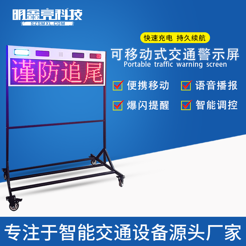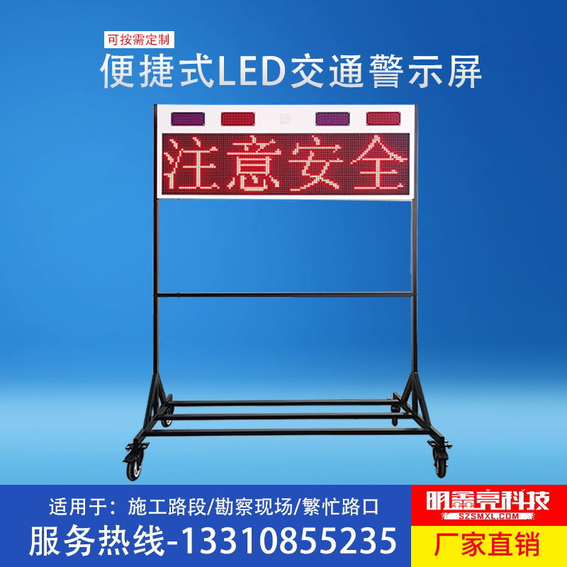 便携可移动式交通信息LED警示屏高清全彩支持定制配备滑轮支架