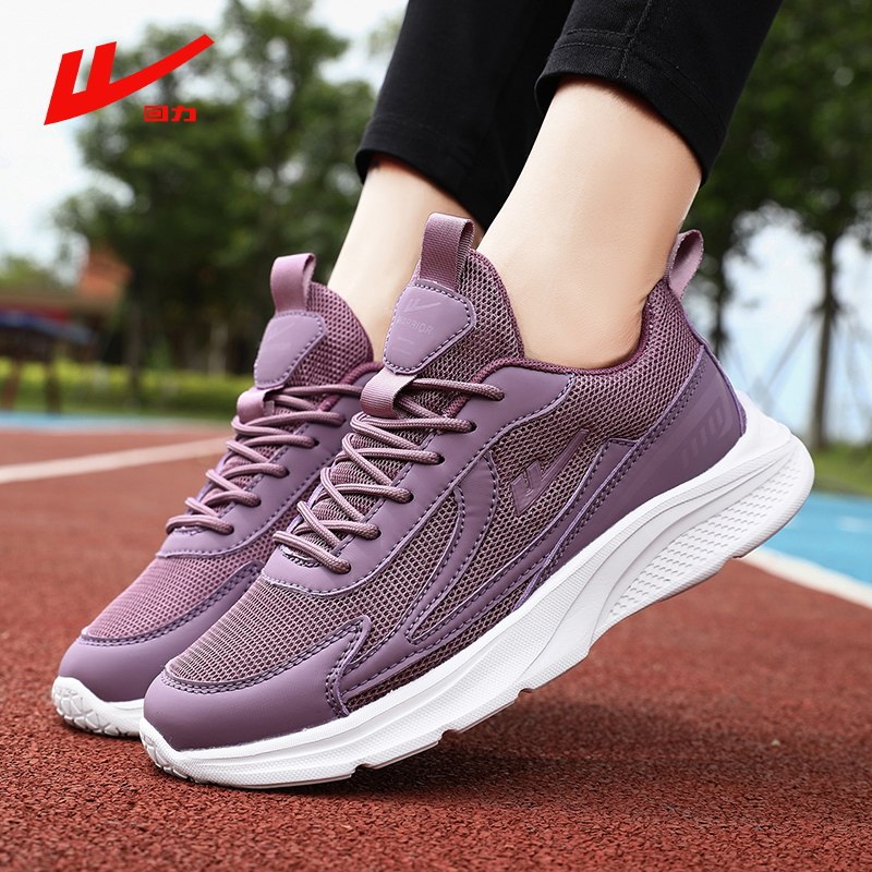 回力运动鞋女款轻便软底超轻紫色不累脚网面透气情侣款减震跑步鞋