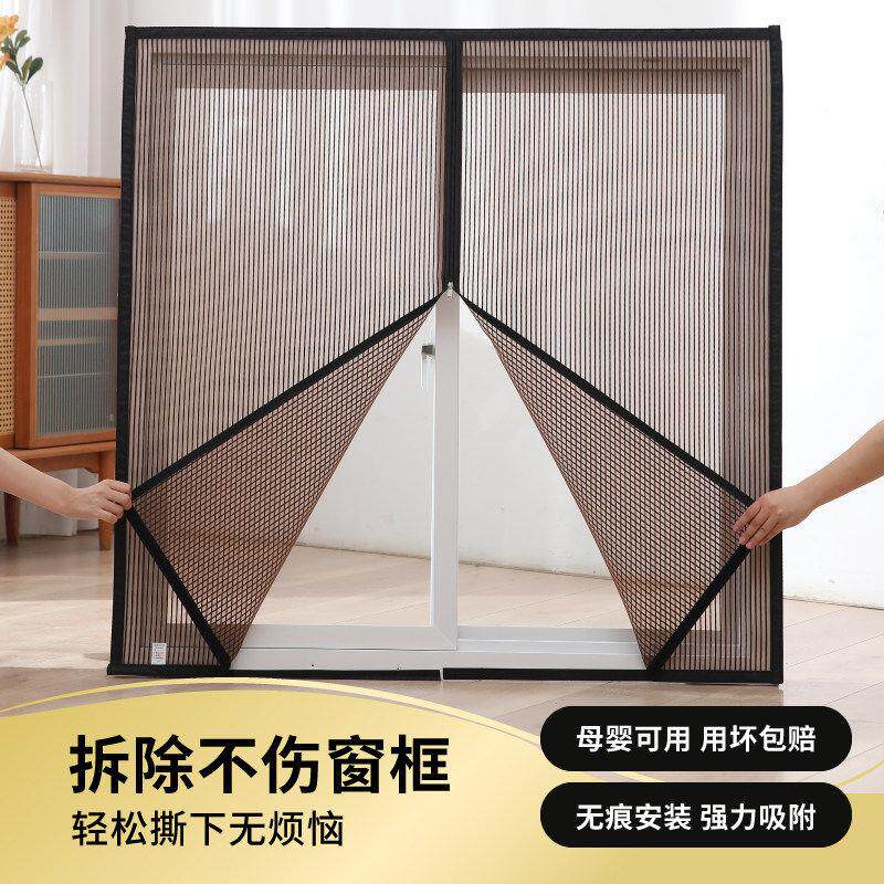 窗户防蚊防猫抓纱窗金刚纱纱网自装自粘中间磁吸纱窗防尘过滤纱网