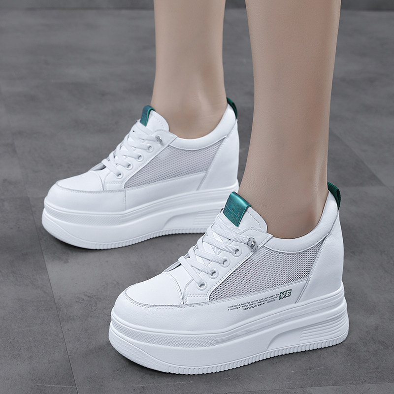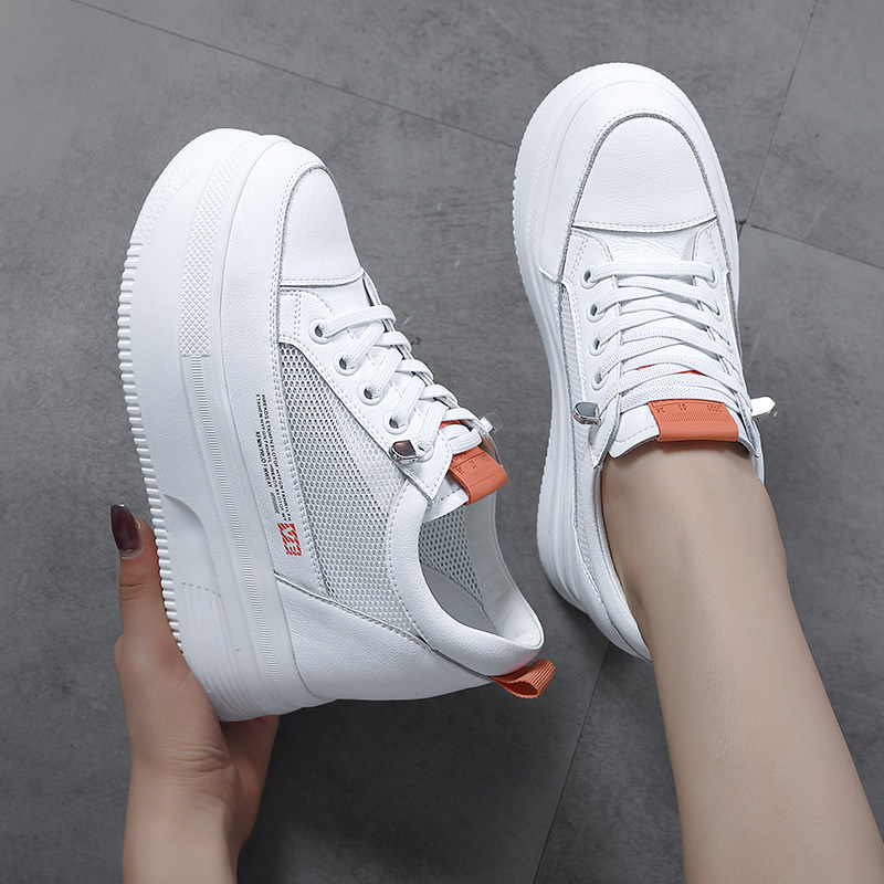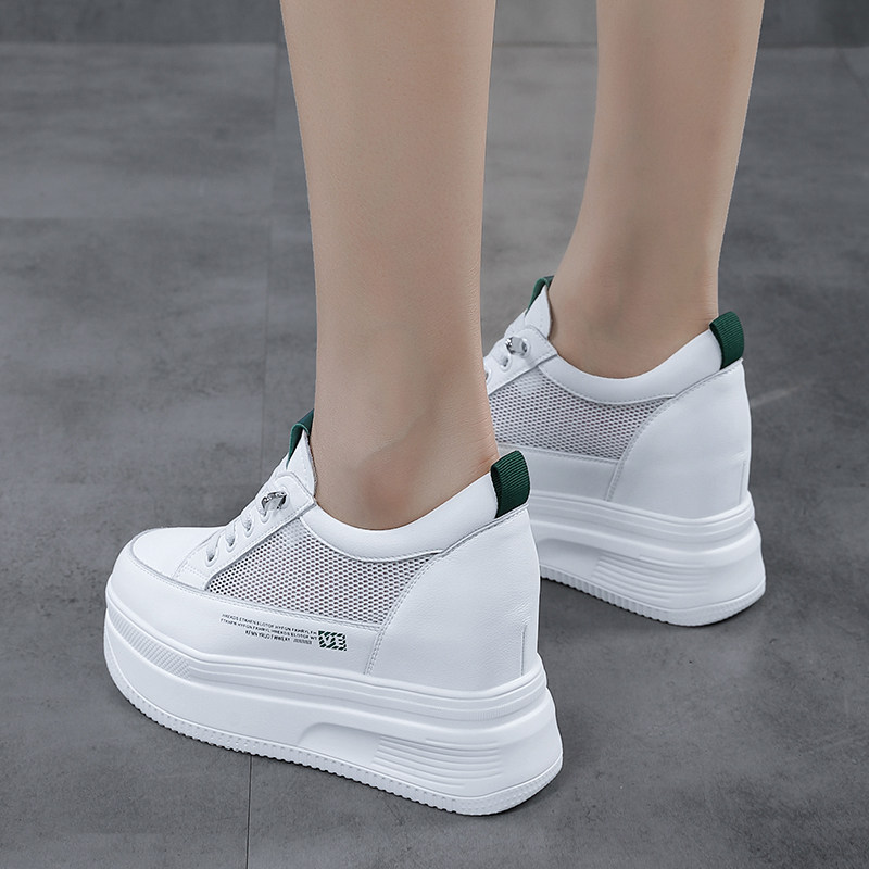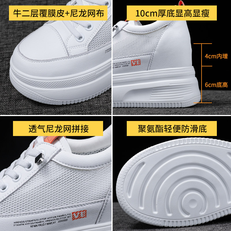 内增高网面小白鞋女2026春夏新款透气真皮厚底10CM百搭踩屎感女鞋