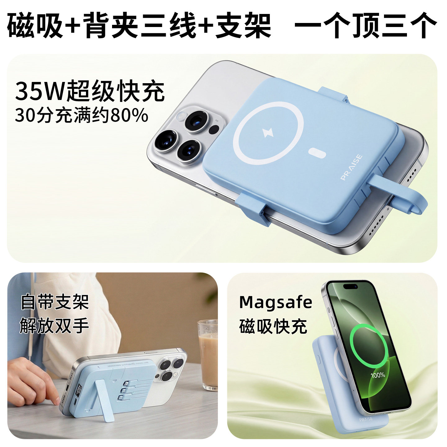 311线报网描述:磁吸无线充自带线3C认证智能数显带支架