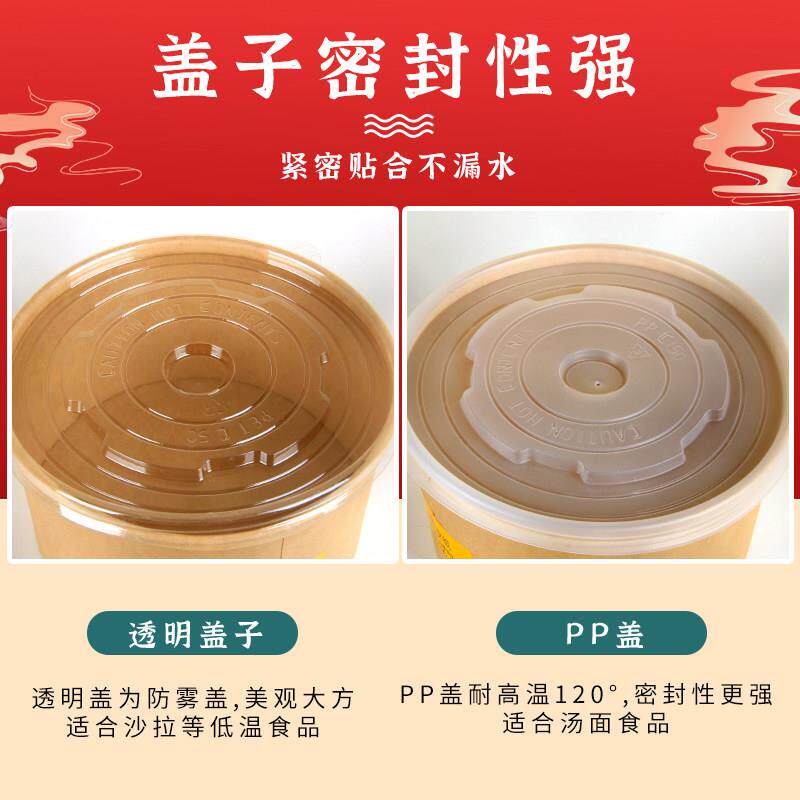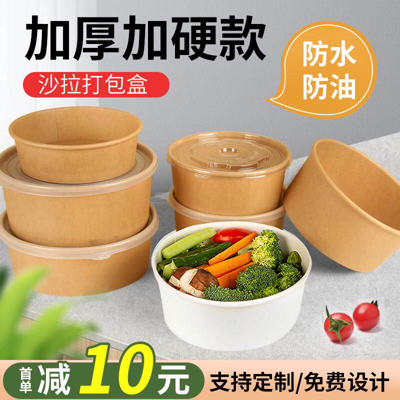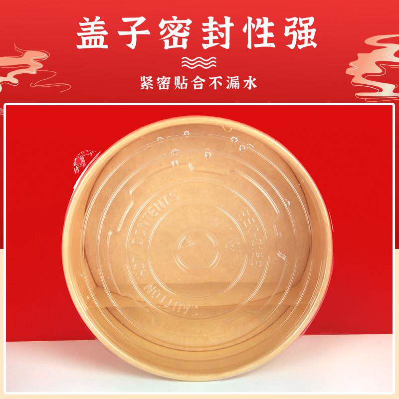 牛皮纸碗打包盒一次性餐盒圆形加厚带盖子沙拉碗快餐盒纸质饭盒外
