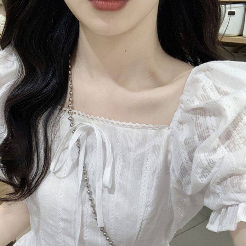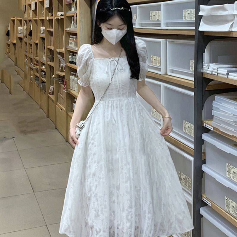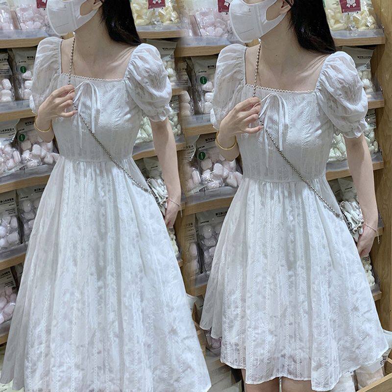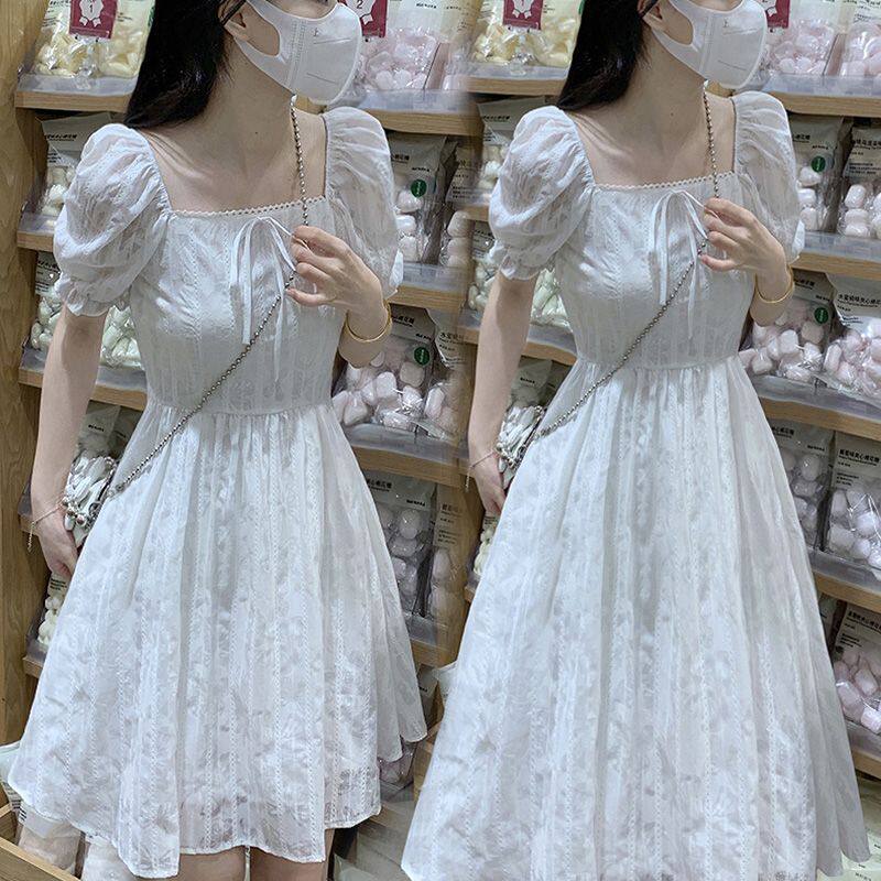 胖mm夏季新款女时尚小个子气质小清新方领短袖连衣裙大码显瘦裙子