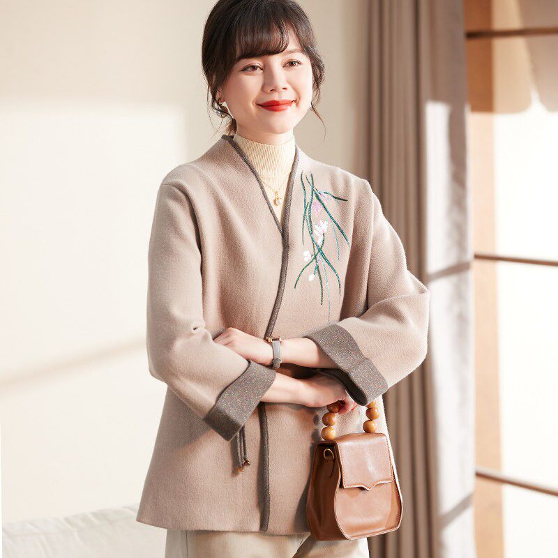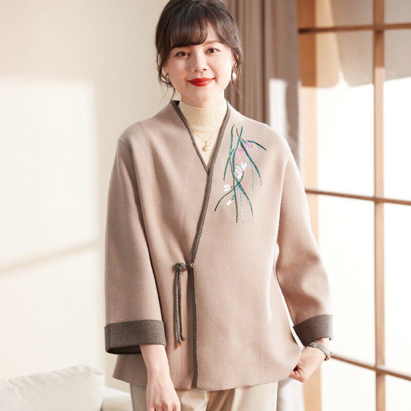 喜卉新中式妈妈春装国风外套2026新款中老年女装春季针织开衫上衣