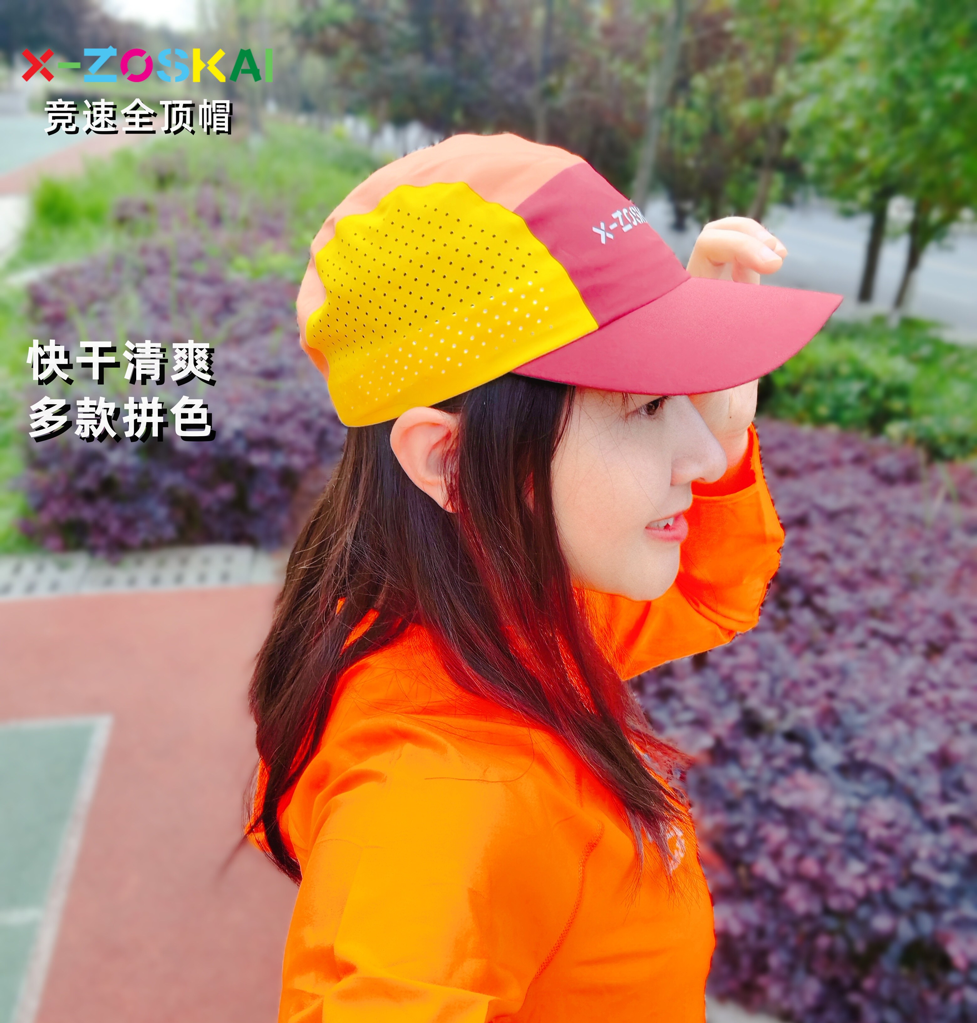 ZK全顶帽子跑步越野拼色多孔透气马拉松运动潮流X-ZOSKAI