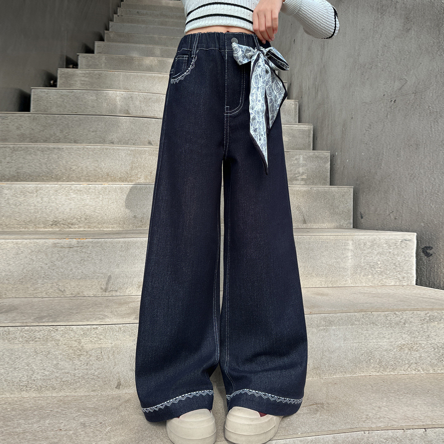 女童牛仔裤2026新款春秋季青少年儿童裤子女孩宽松阔腿裤大童春装
