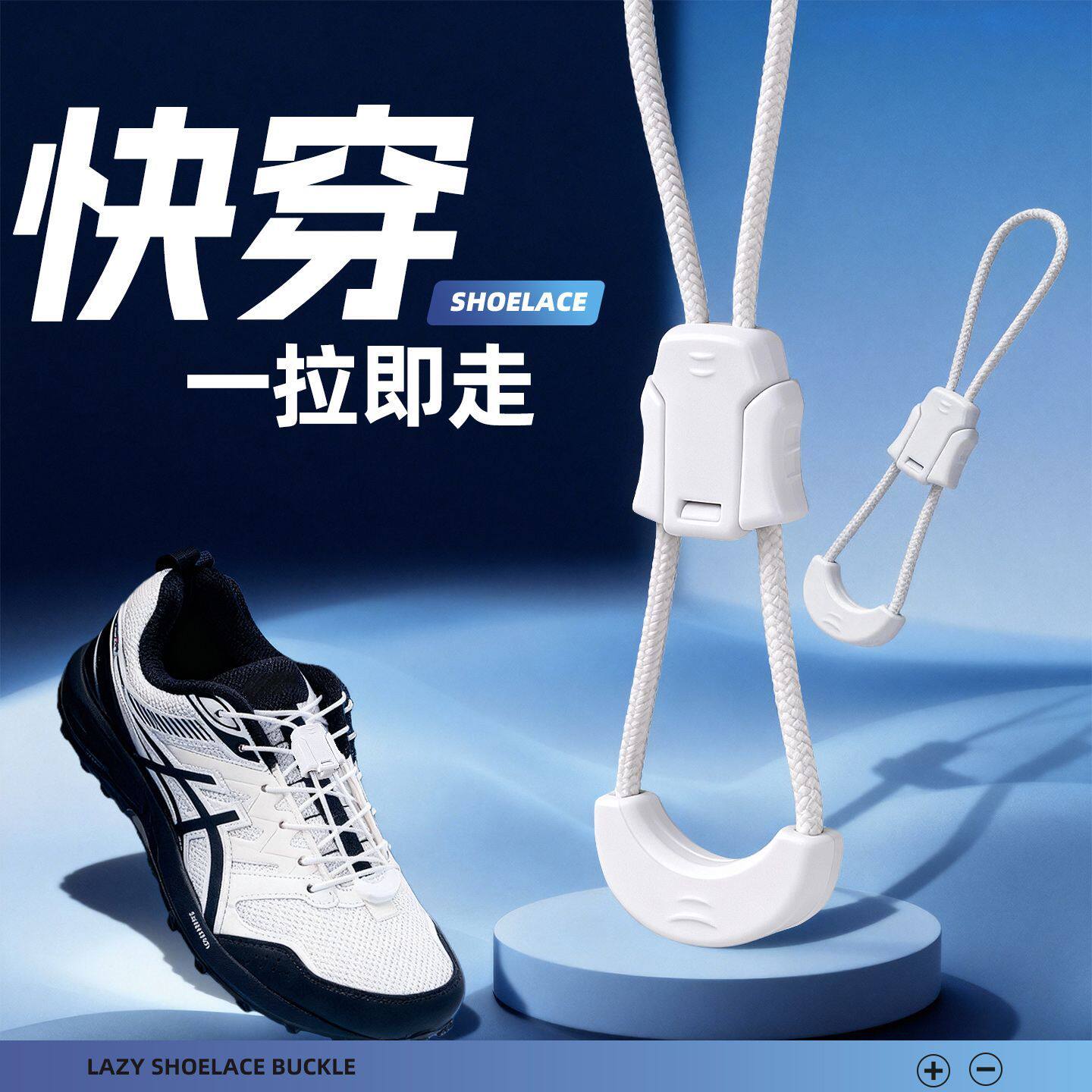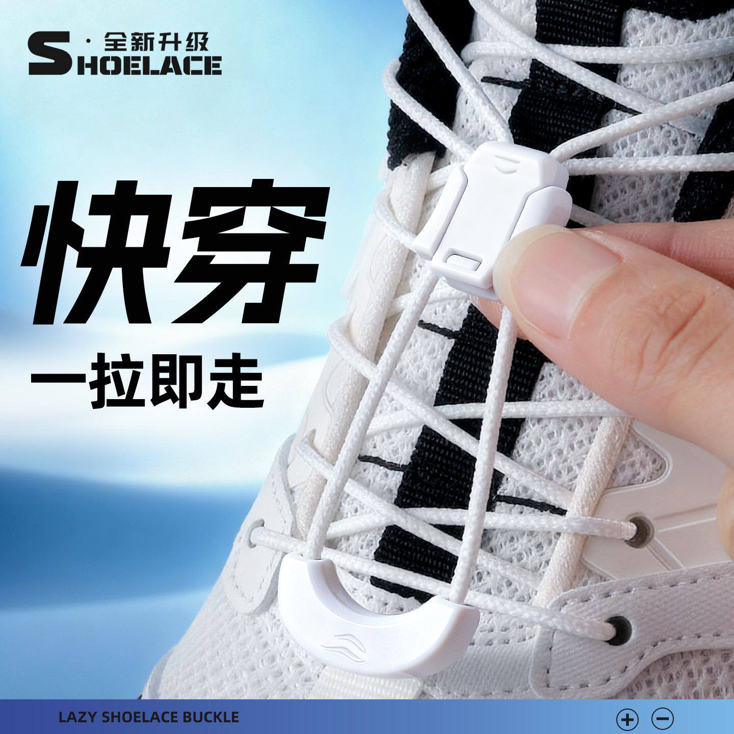 运动鞋跑鞋免系鞋带懒人免绑神器卡扣黑白色圆绳快速绑带男女款