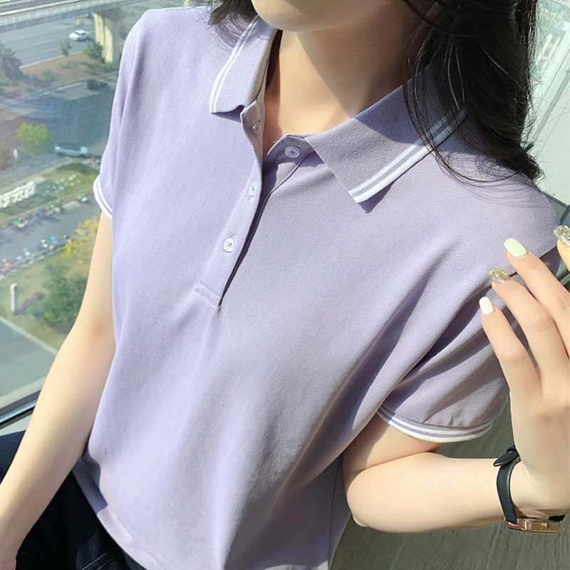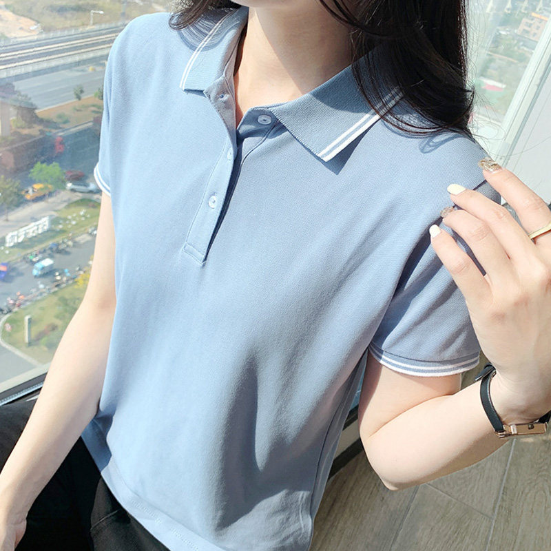 夏季纯棉短袖polo衫女 新款宽松大码翻领t恤工作服定制LOGO有领