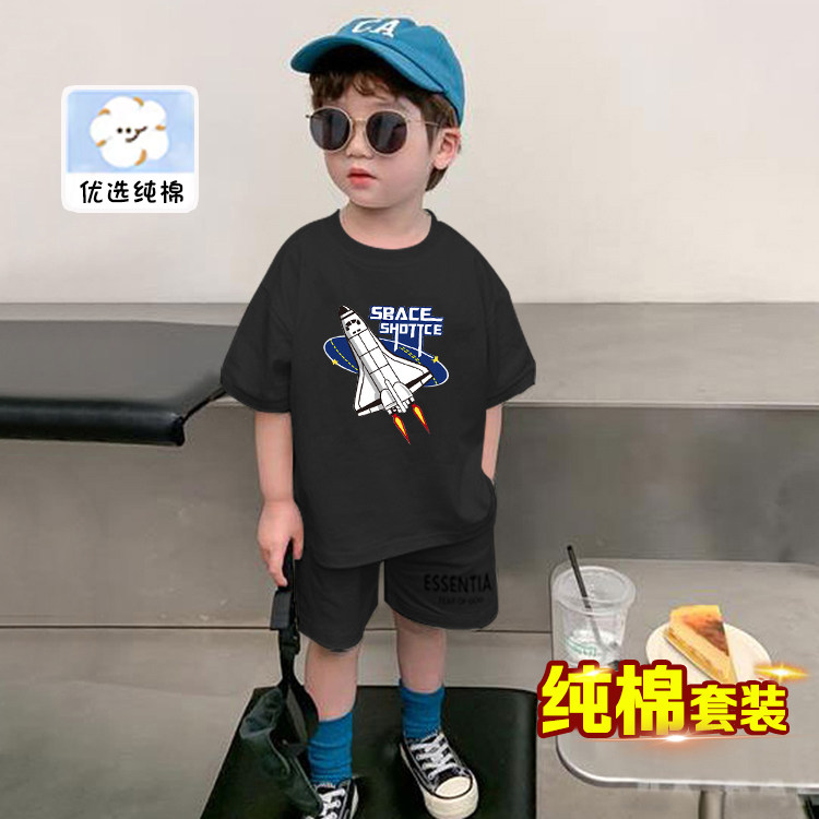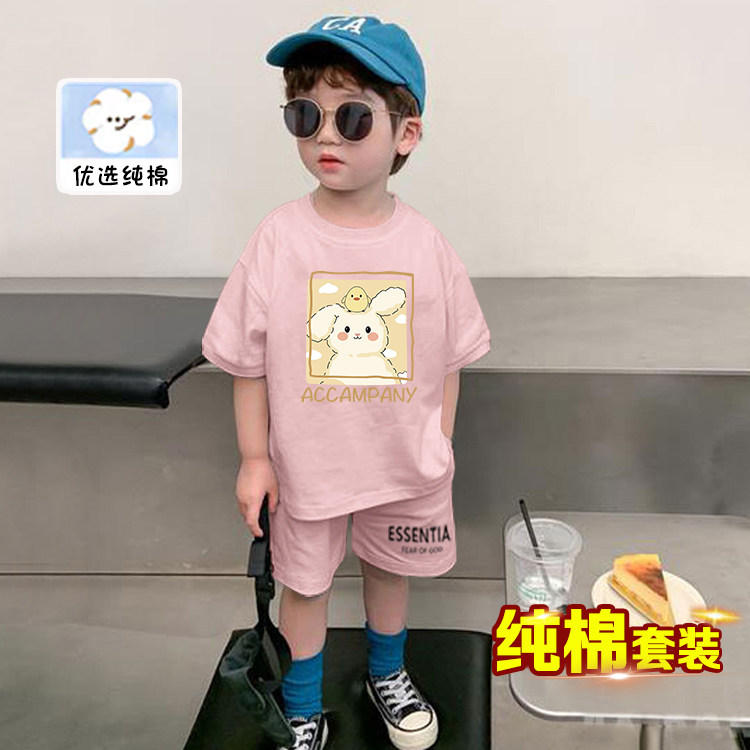 男童夏装2025新款短袖套装纯棉女童半袖t恤洋气时髦儿童夏季童装