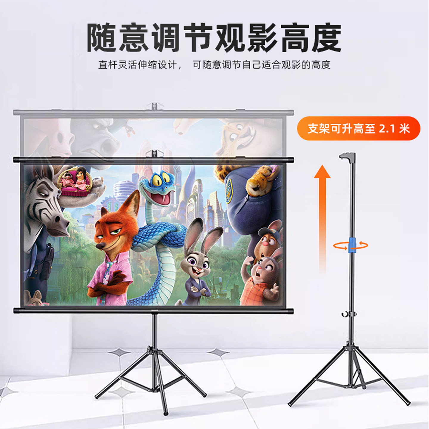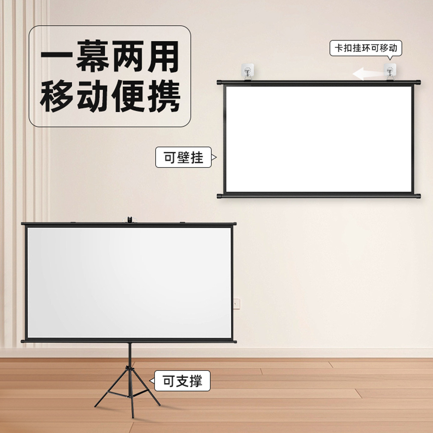 指南者投影幕布支架落地移动便携式免打孔可壁挂72/84/100寸高清家用卧室投影布户外投影仪幕布办公会议屏幕