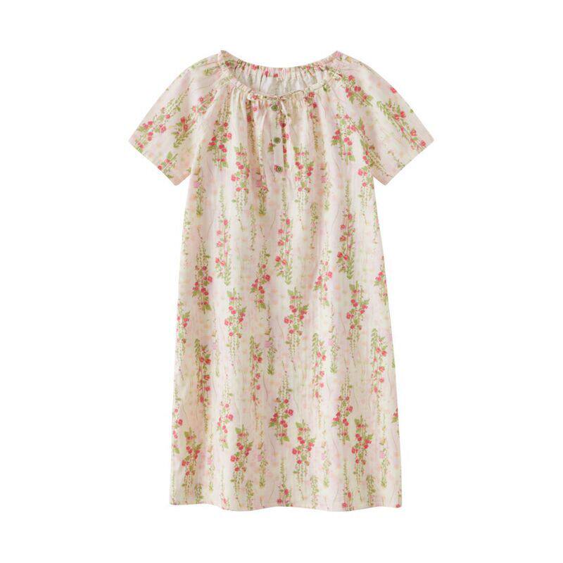 向阳而生纯棉短袖睡裙夏季款全棉纱布女士睡衣大码夏天连衣裙