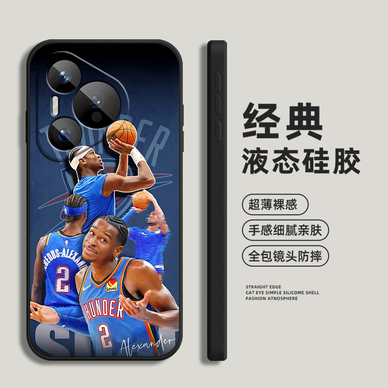 亚历山大NBA雷霆篮球衣适用华为Pura70Ultra手机壳P60ART保护套mate50pro硅胶软40Pro+来图定制30E20全包黑色