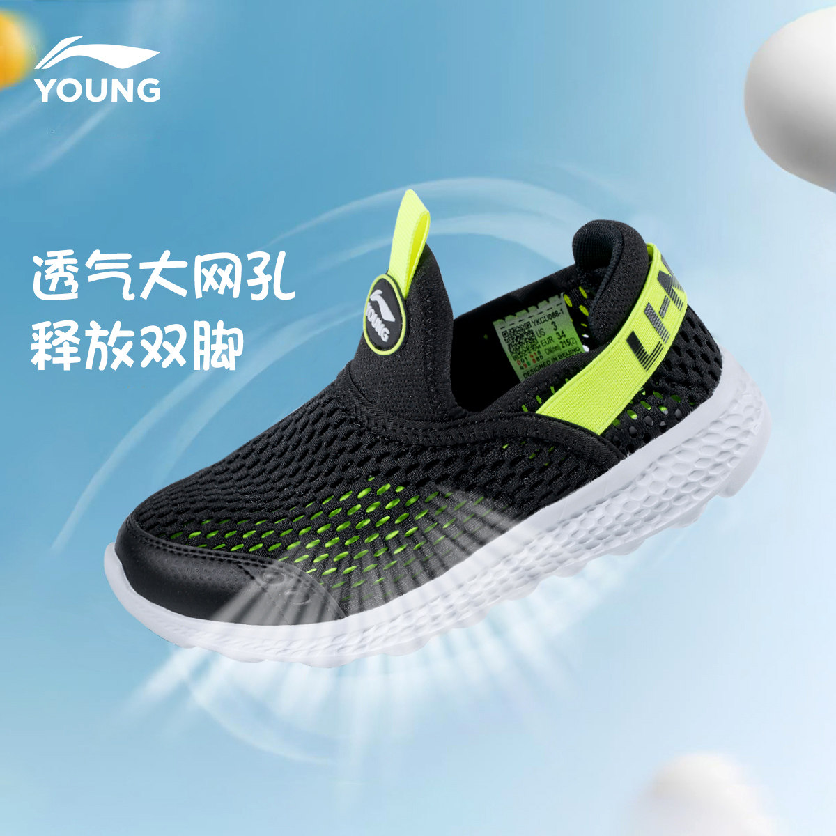 李宁男童大网眼一脚蹬2026夏季新款青少年儿童轻便休闲鞋运动鞋子