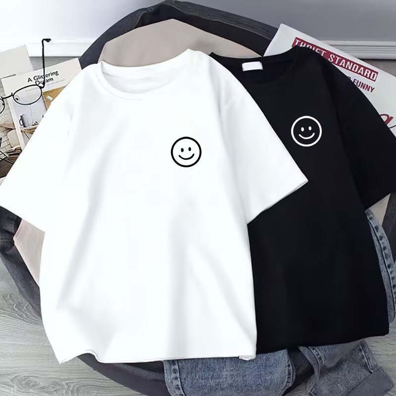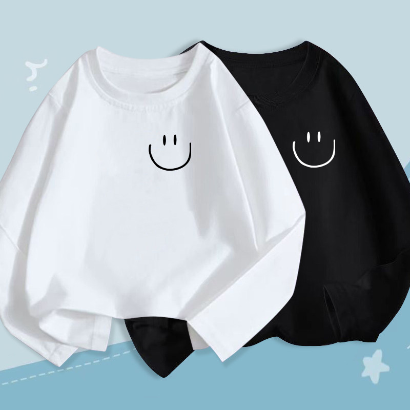 儿童纯棉短袖T恤女童2025年新款夏季简约笑脸中大童女孩白色上衣t