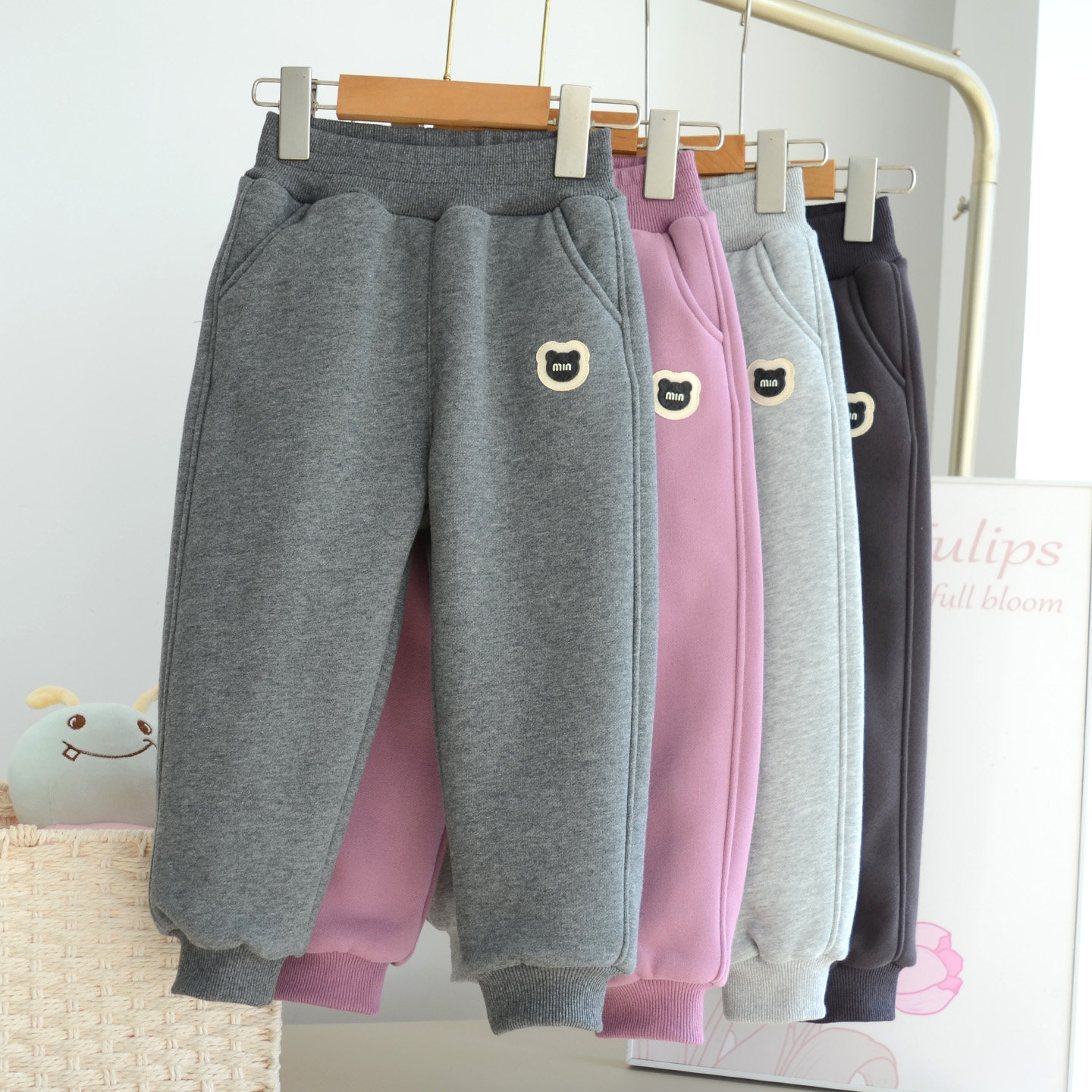 儿童双层裤子春季新款男女童加棉加厚运动裤 棉里布保暖卫裤