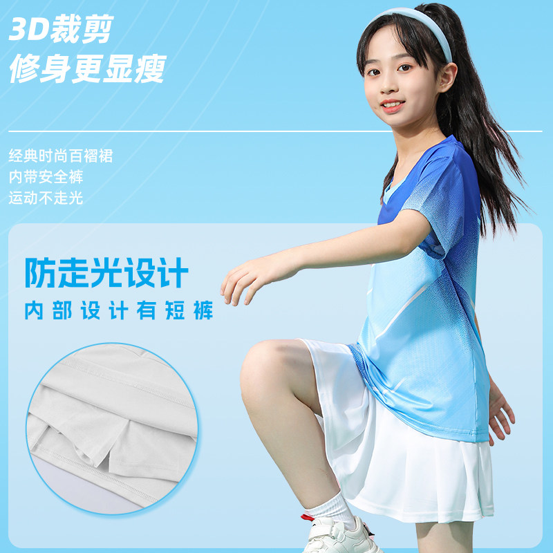 儿童羽毛球训练服运动套装男女童速干衣短袖乒乓网球服裙子半身裙