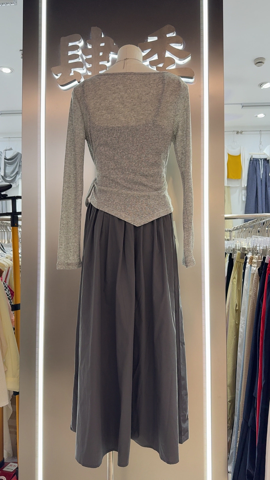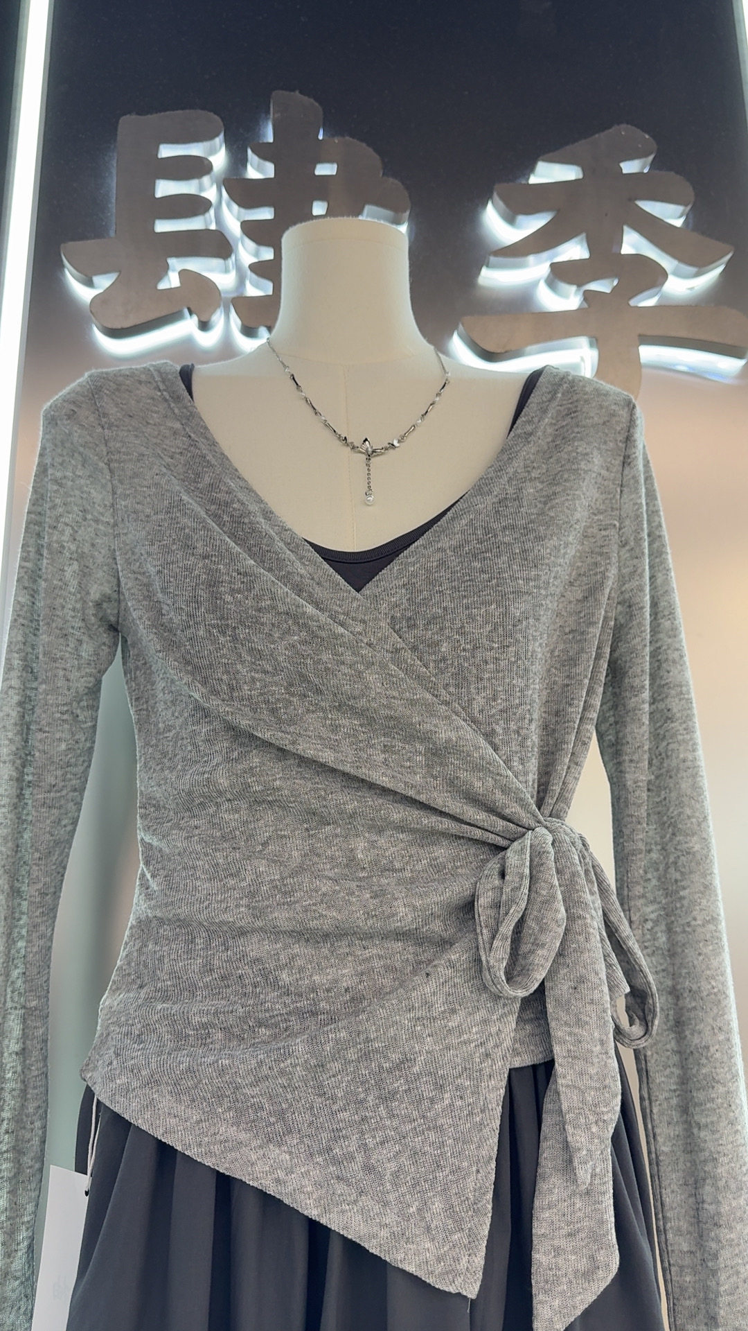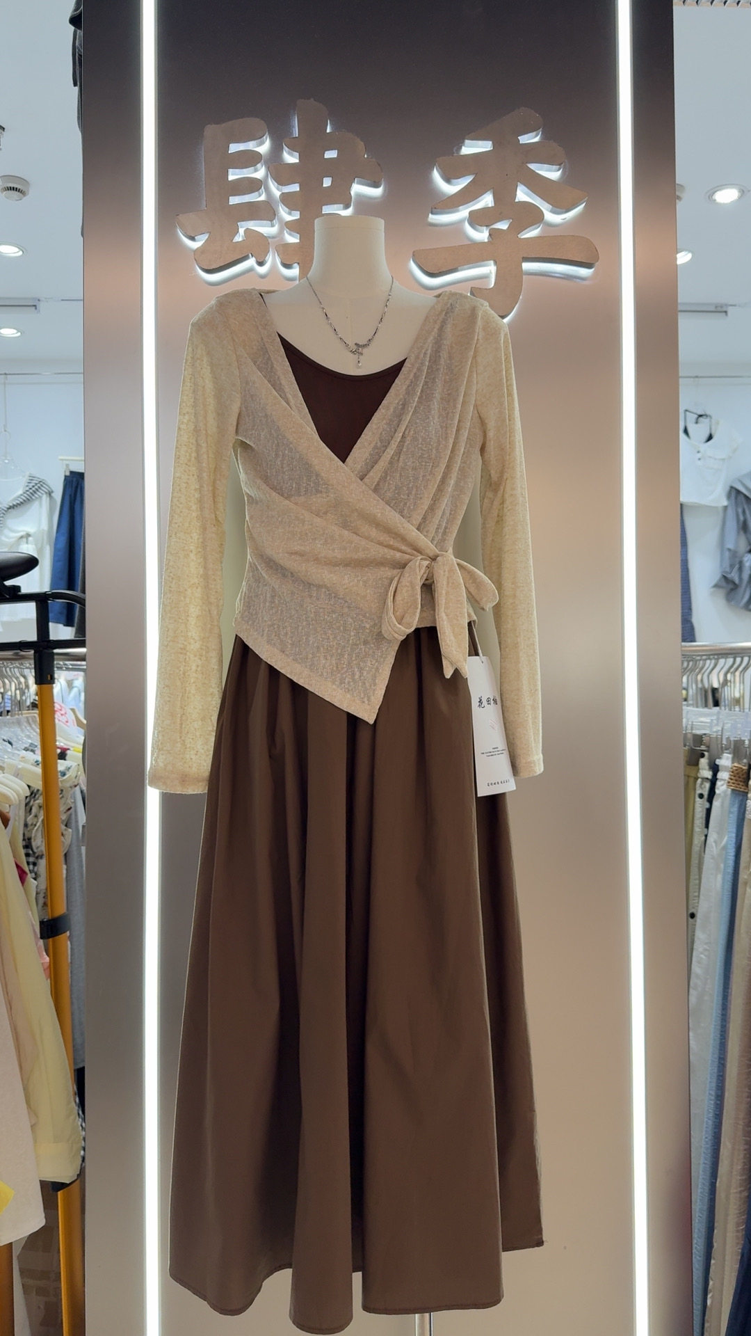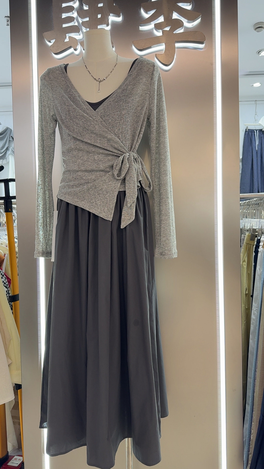 25秋季新款韩版别致设计感辣妹V领长袖上衣修身显瘦连衣裙套装女