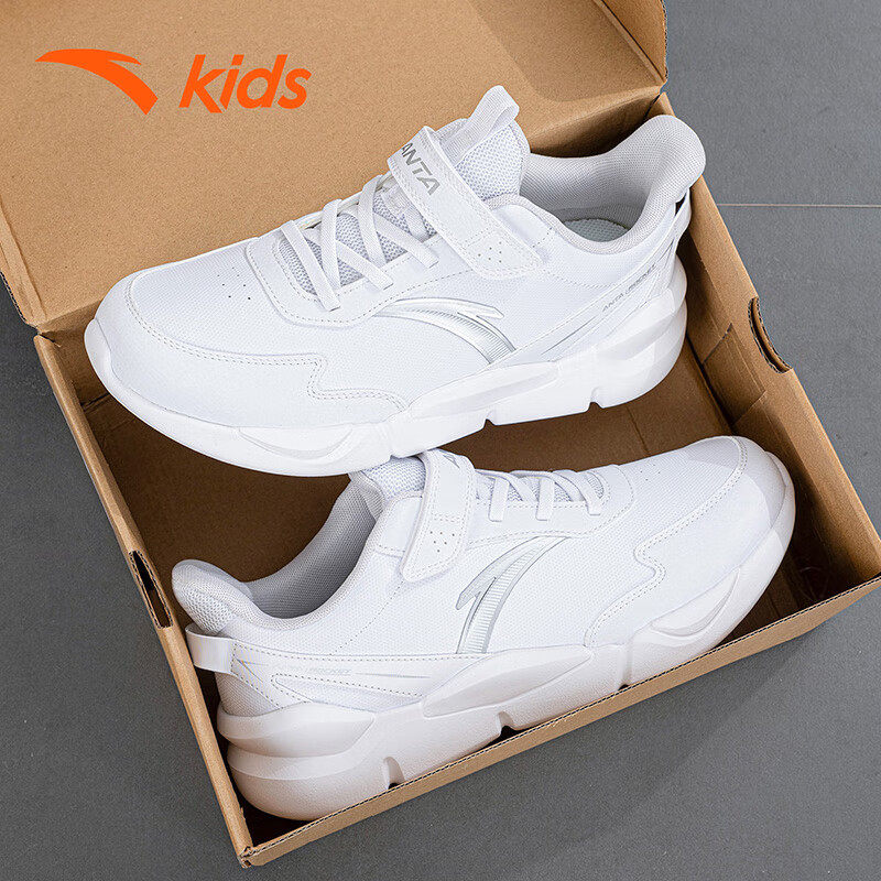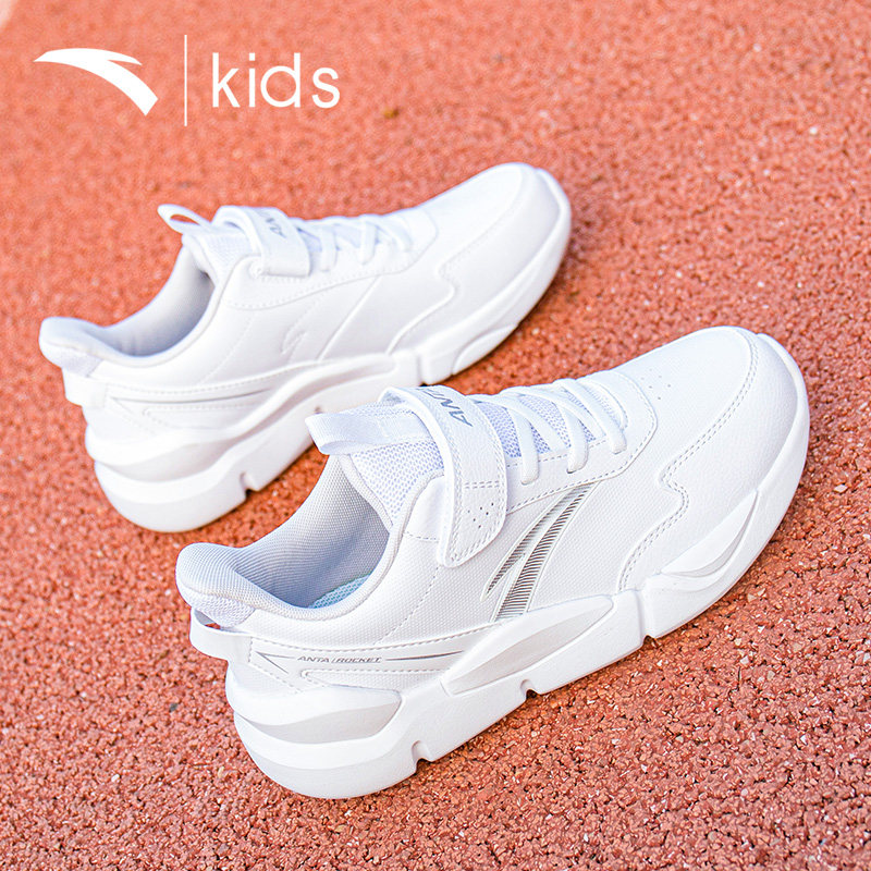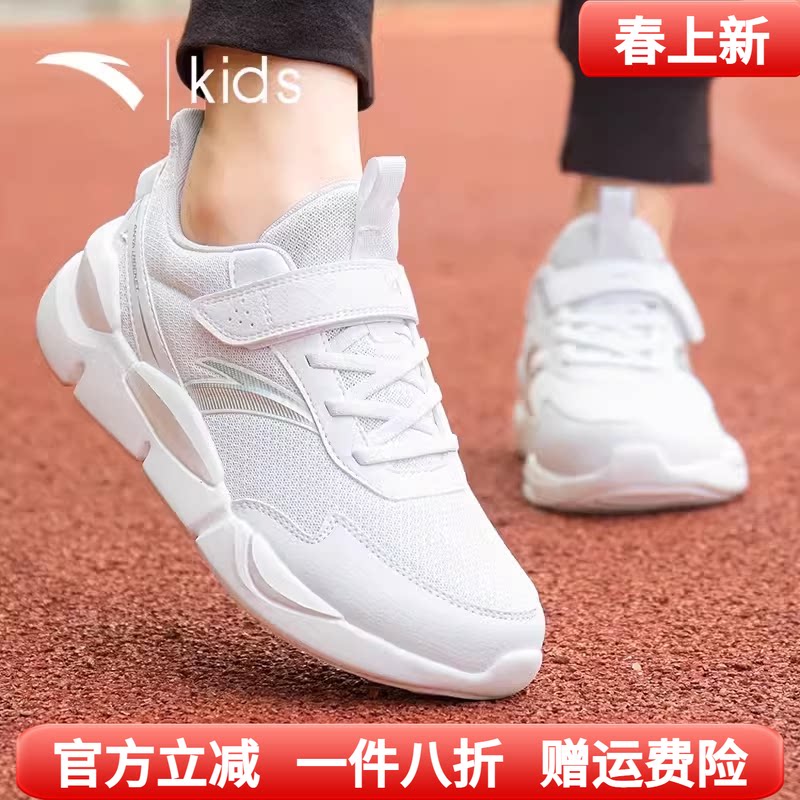 安踏童鞋儿童小白鞋女童网面透气鞋子男童白色运动鞋春季大童跑鞋