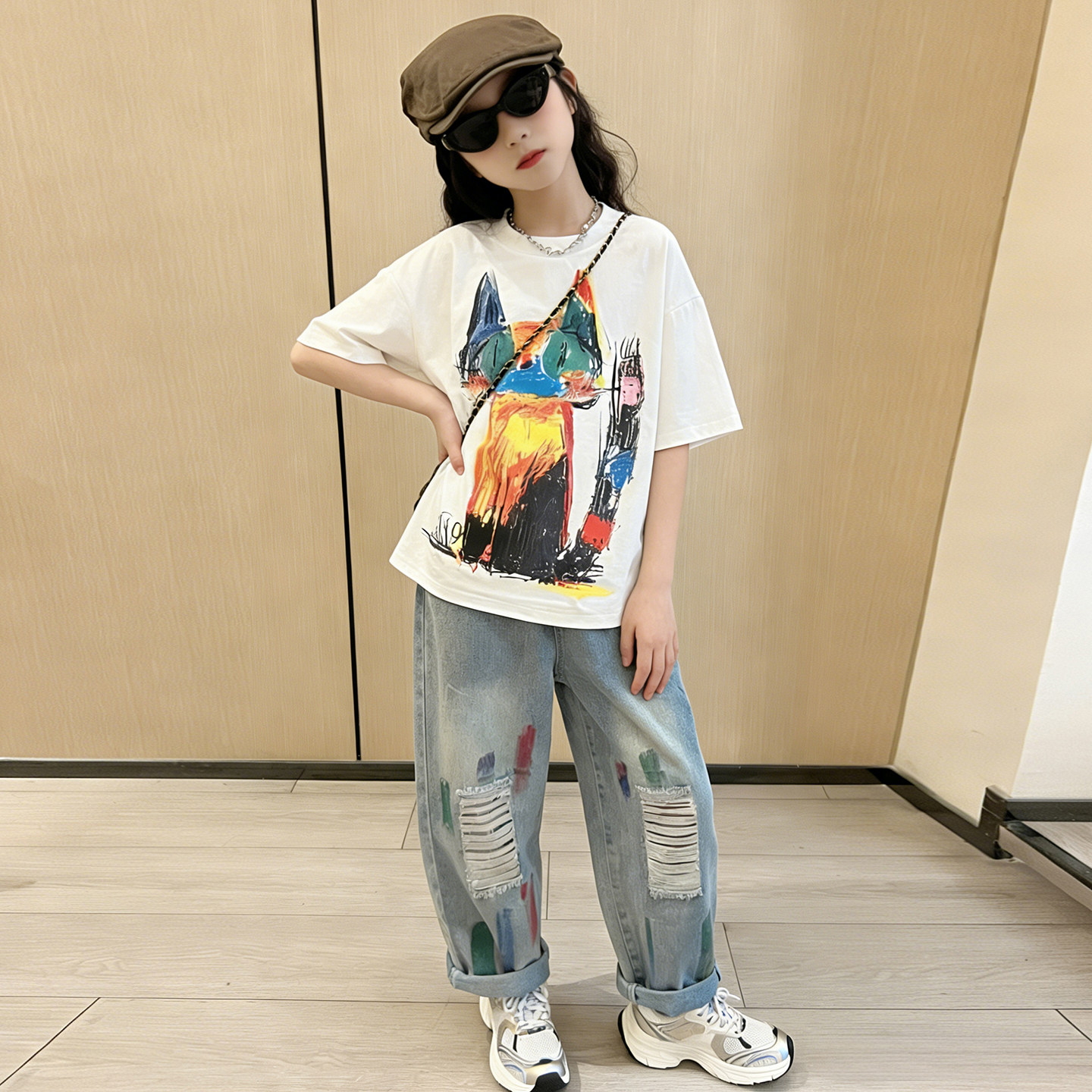 女童夏装短袖t恤2026新款纯棉儿童夏装洋气童装上衣9女孩夏天衣服