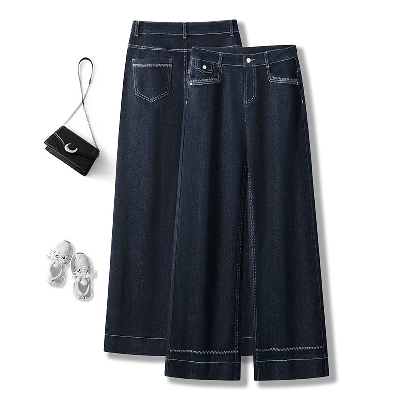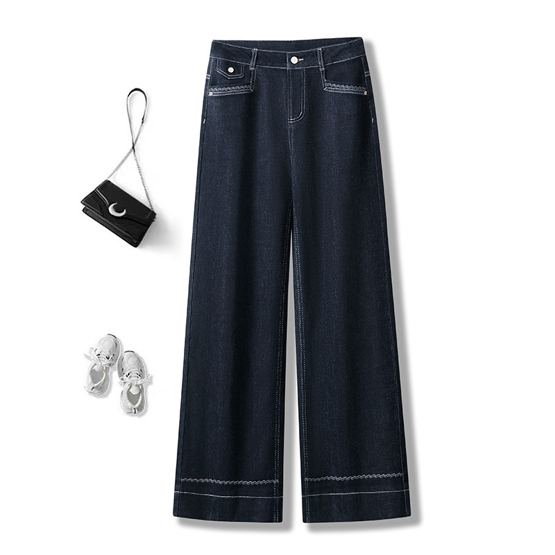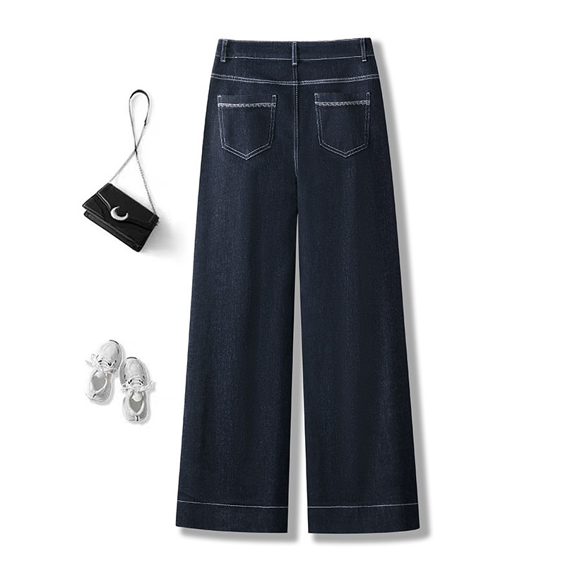 深蓝色牛仔裤子女款春装2025新款高级感丹宁蓝高腰宽松直筒阔腿裤