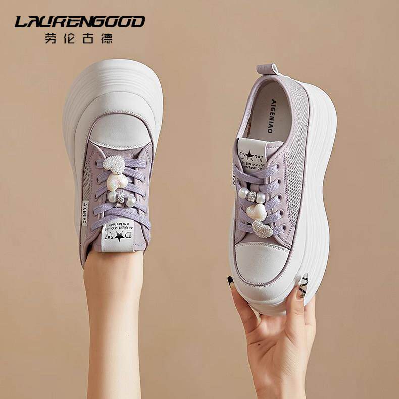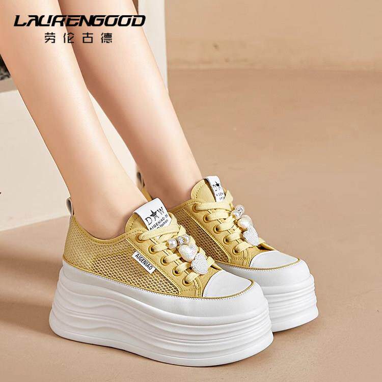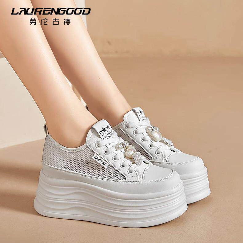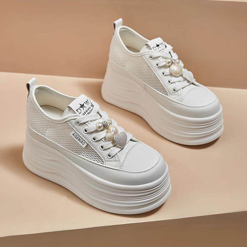 厚底小白鞋女款网面透气百搭爆款板鞋时尚软底小个子内增高鞋子女