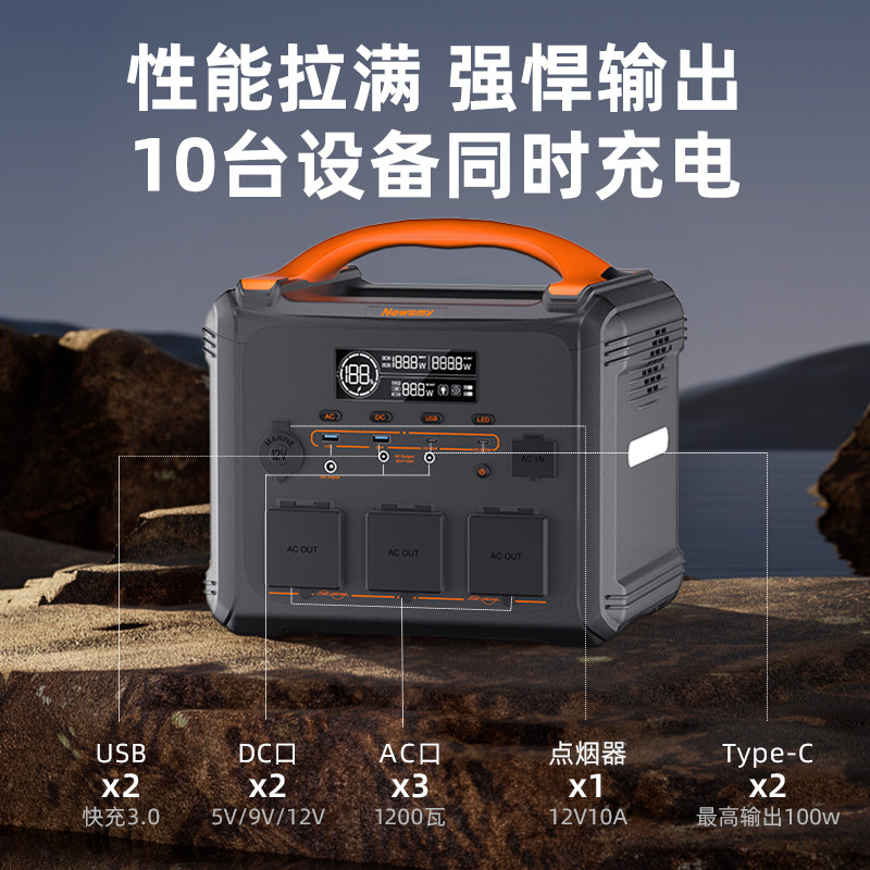 纽曼户外电源1200W大容量220v自驾游小巧便携式移动充电宝蓄电池