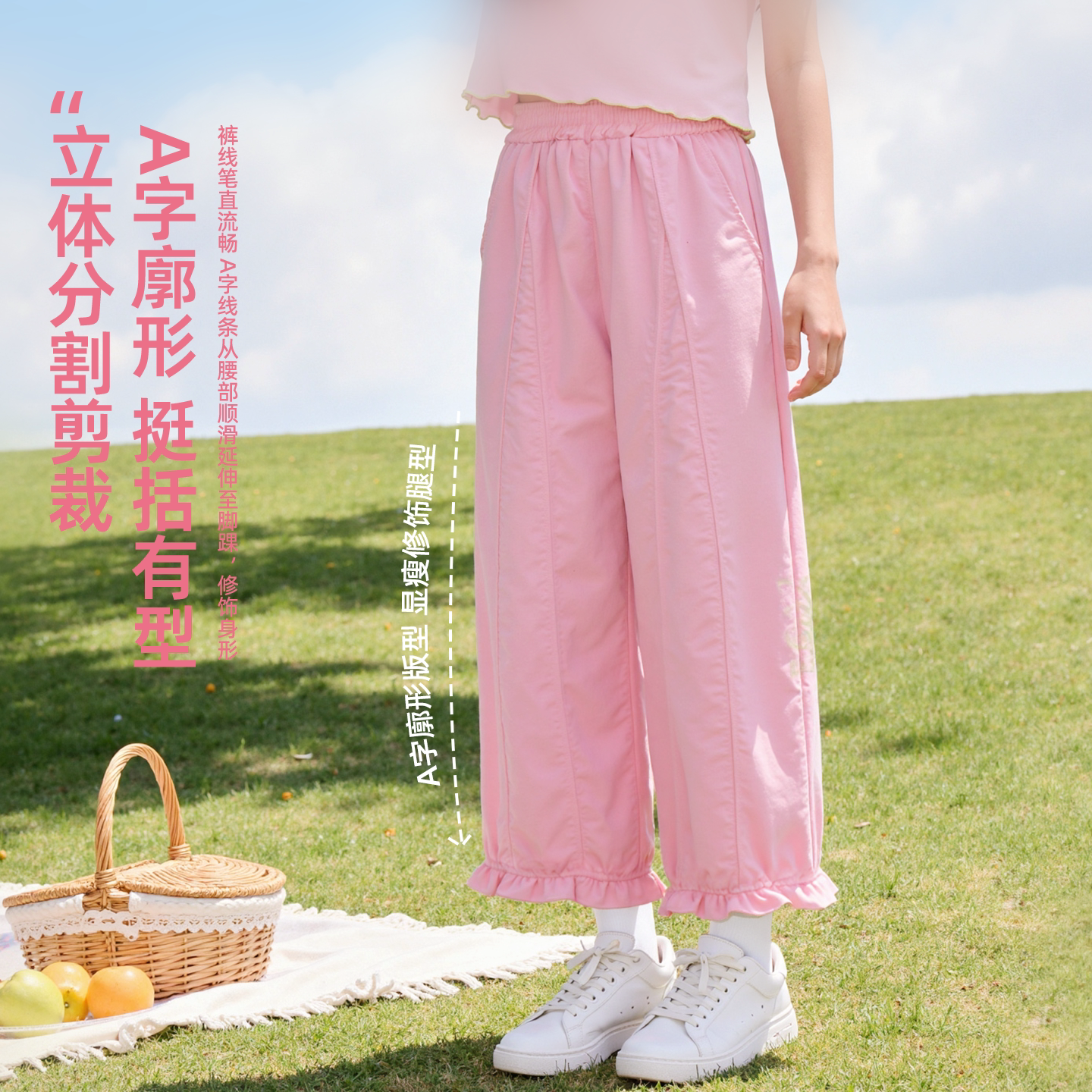 棉致女童裤子2026新款夏季薄款花苞九分裤女孩长裤春装儿童运动裤