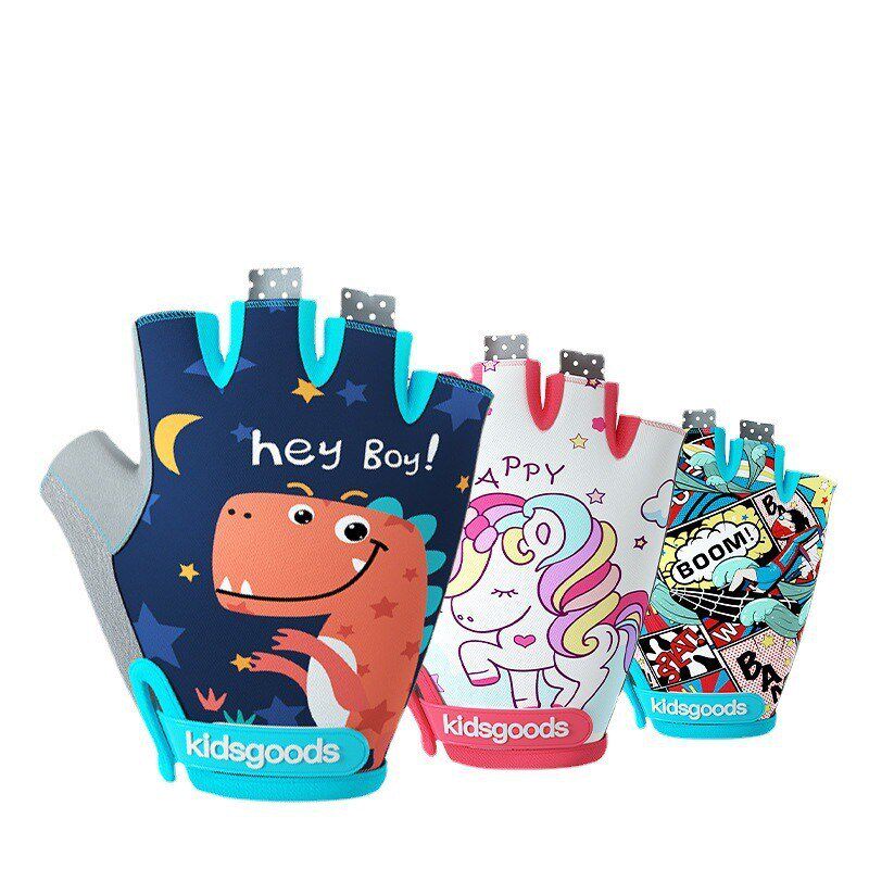 儿童运动防护手套夏季户外飞盘骑行男女儿童全指半V指防滑薄款手