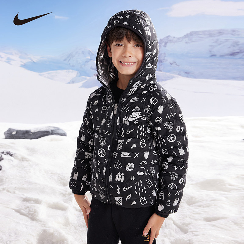 Nike儿童羽绒服男女童双面保暖外套冬季保暖加绒棉服厚NY2342007