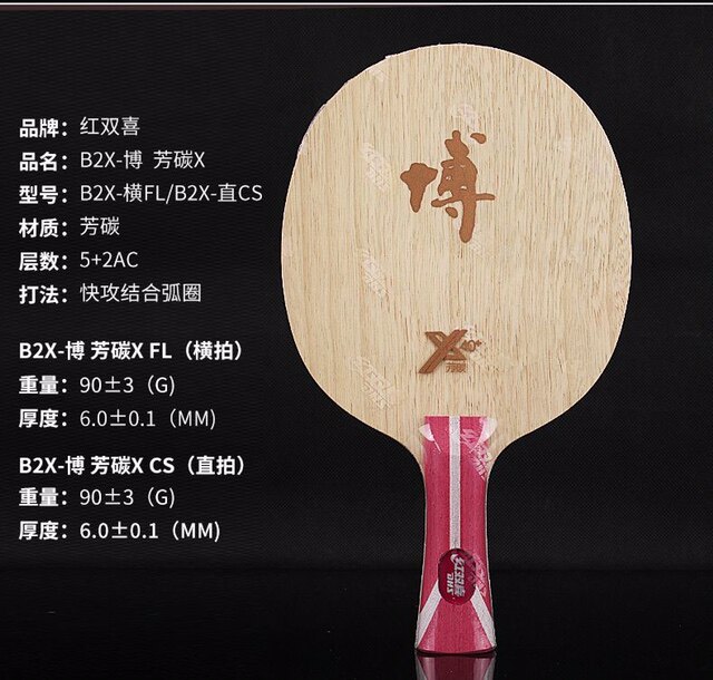 正品红双喜狂飙博B2X乒乓球拍狂飚博B2七层芳碳纯木方博底板