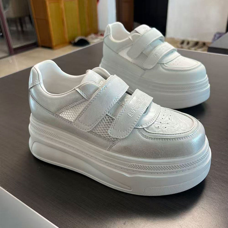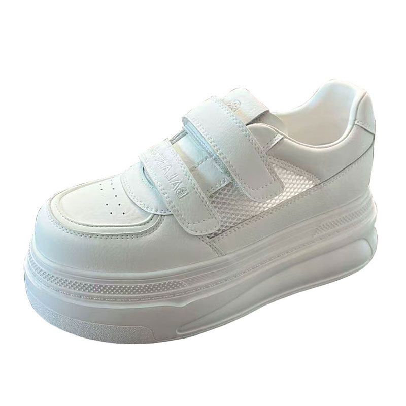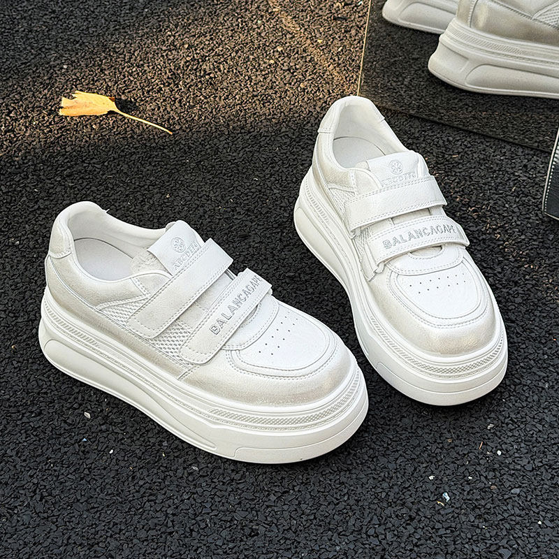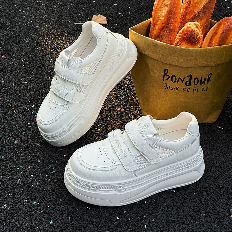 欧货真皮网鞋厚底小白鞋魔术贴2026夏季新款软底休闲鞋网面板鞋