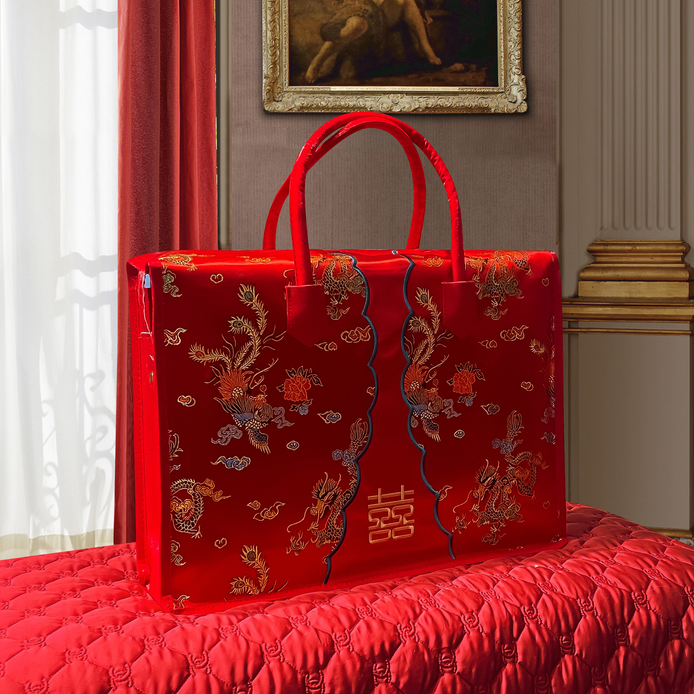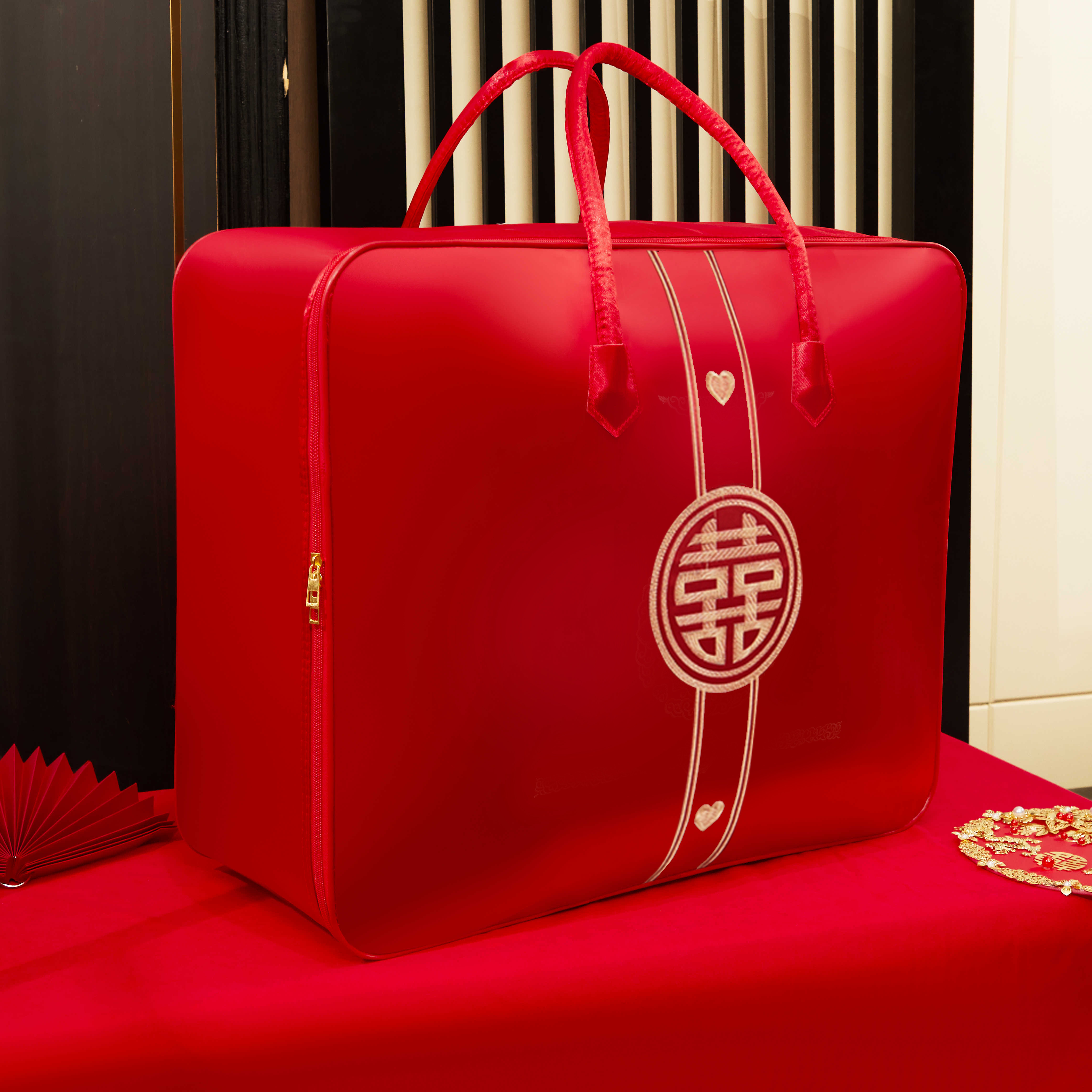 结婚被子收纳袋红色四件套袋陪嫁装喜被衣服的手提袋牛津布包装袋