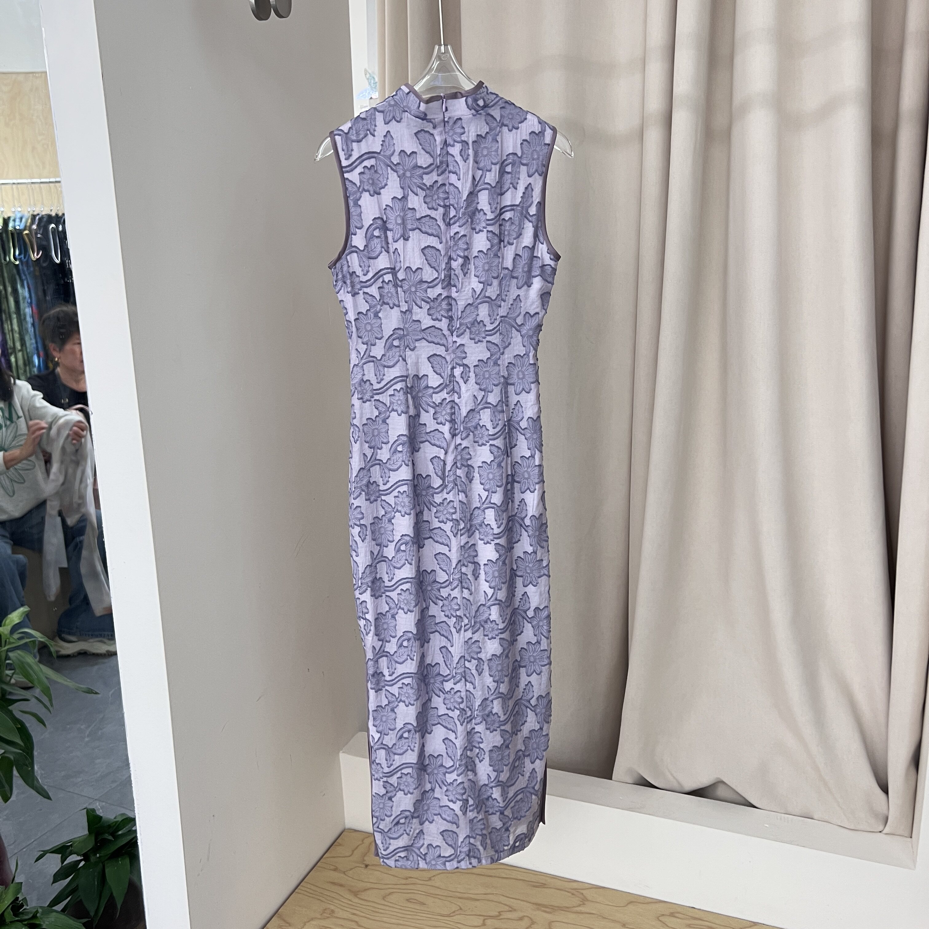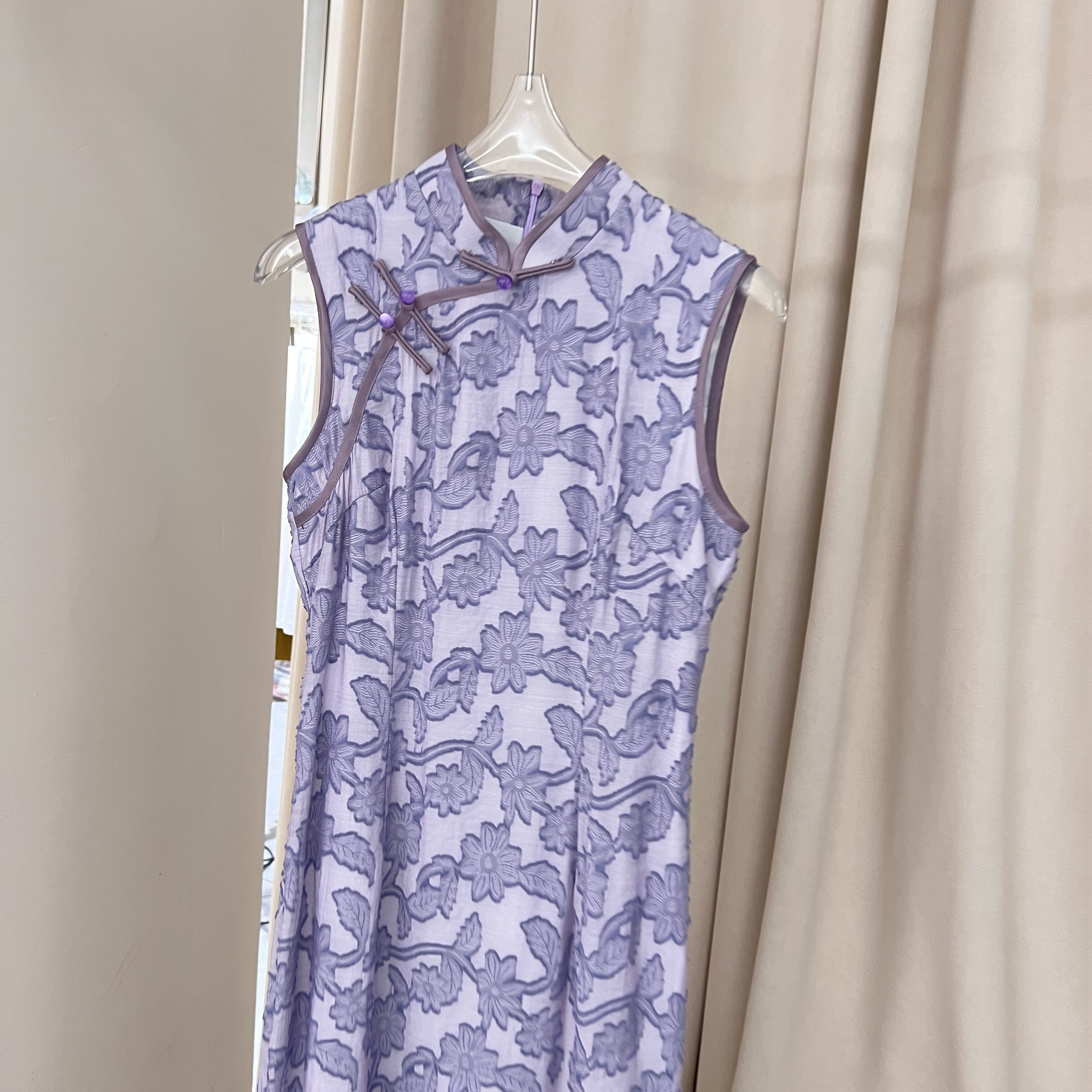 复古风无袖长款旗袍女夏季淡紫色透气日常剪花气质连衣裙长裙子潮