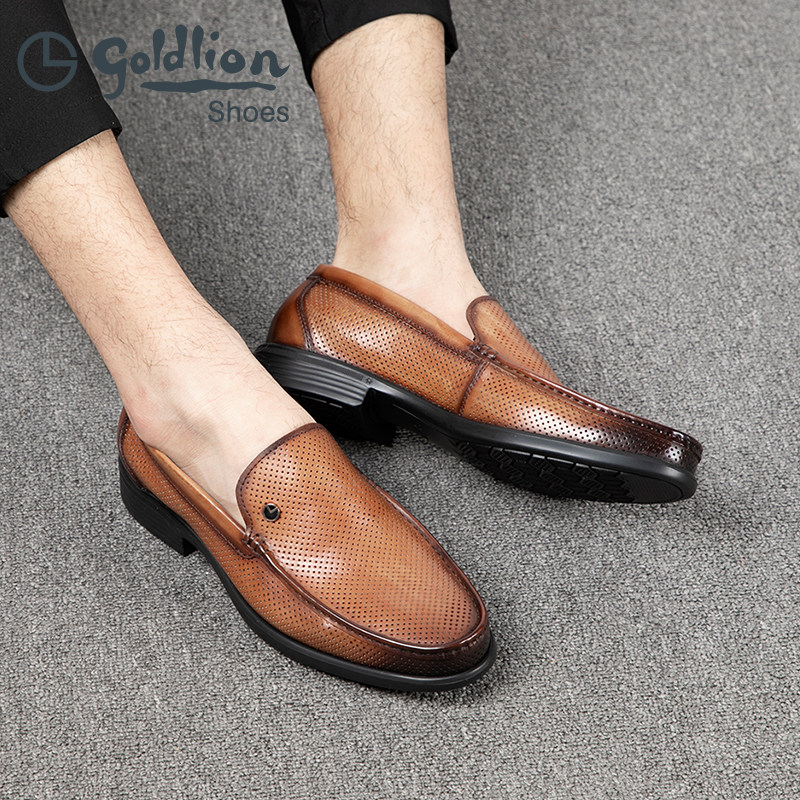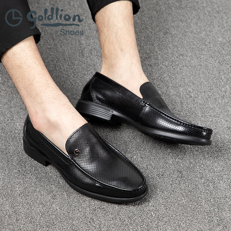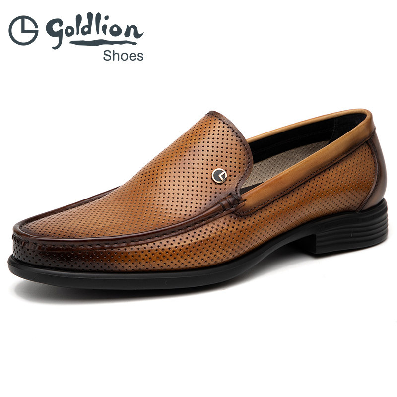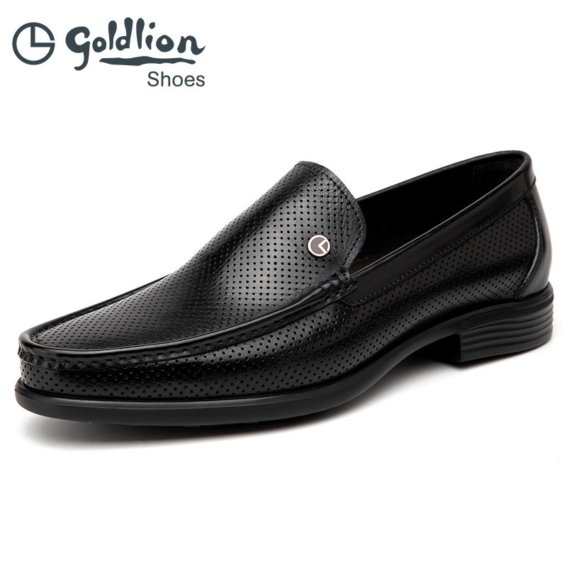 金利来男鞋夏季真皮透气轻冲孔镂空网眼一脚蹬商务休闲男士皮凉鞋