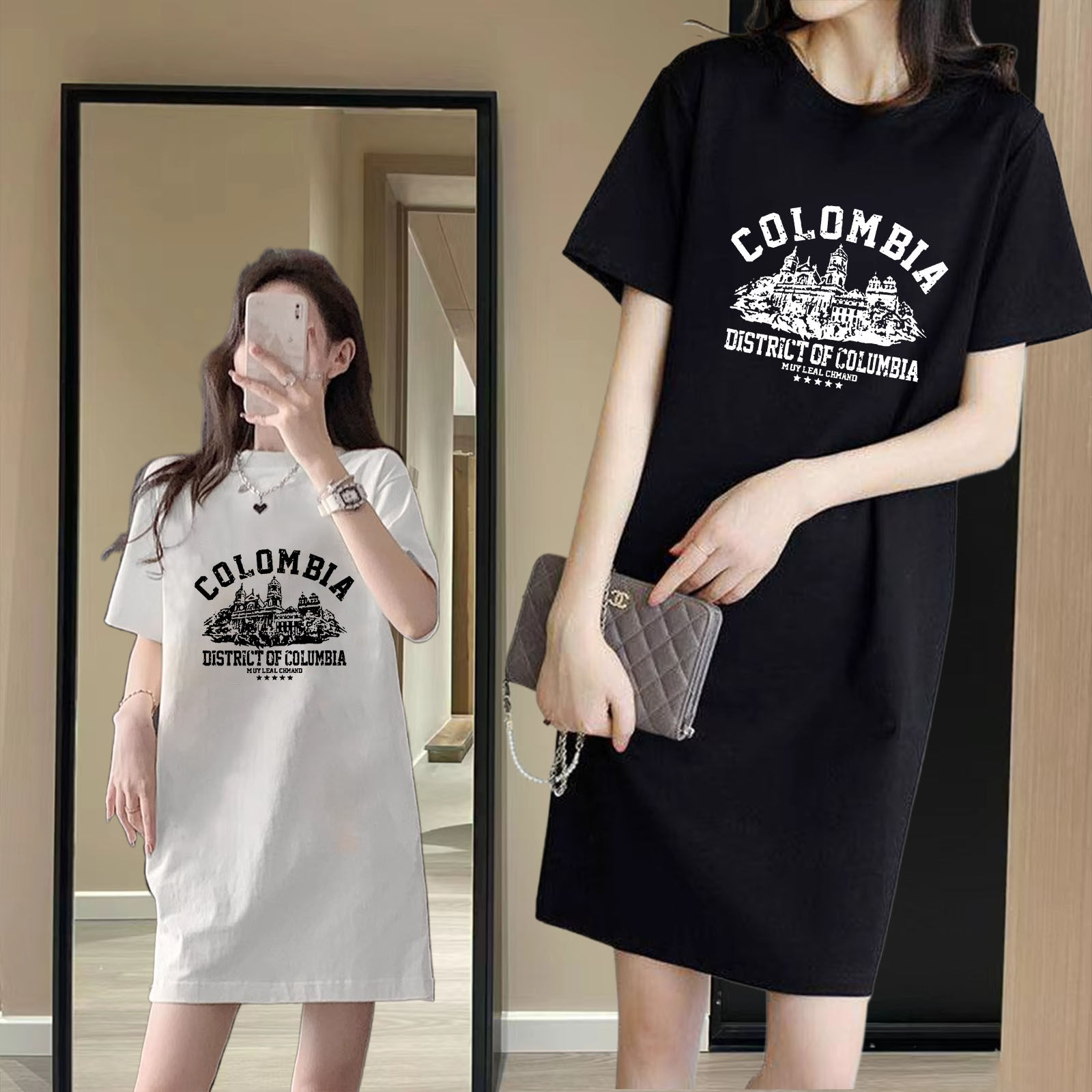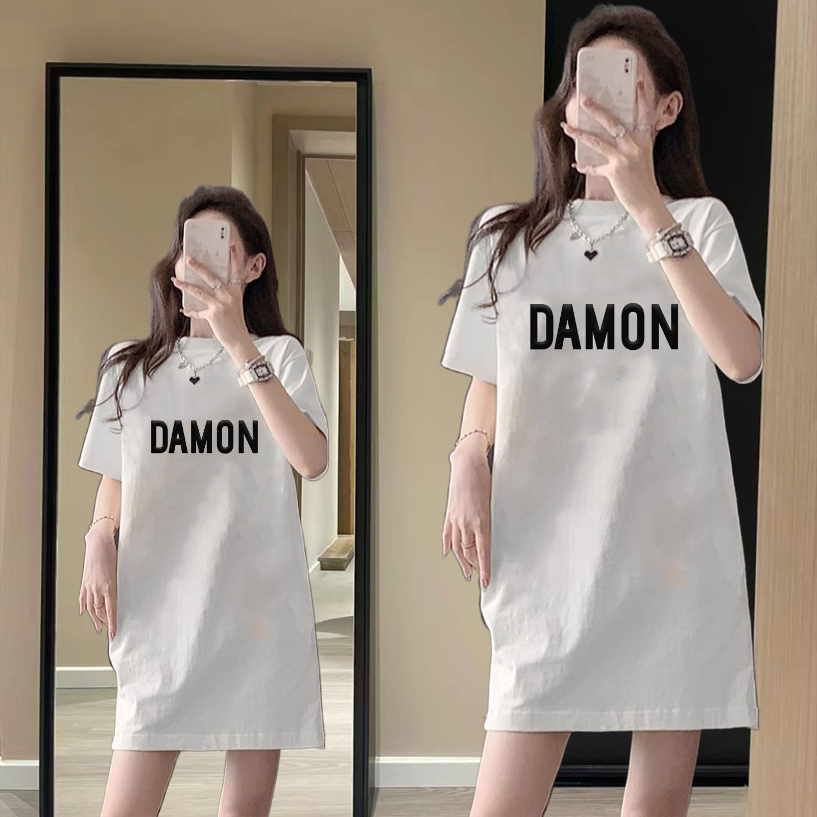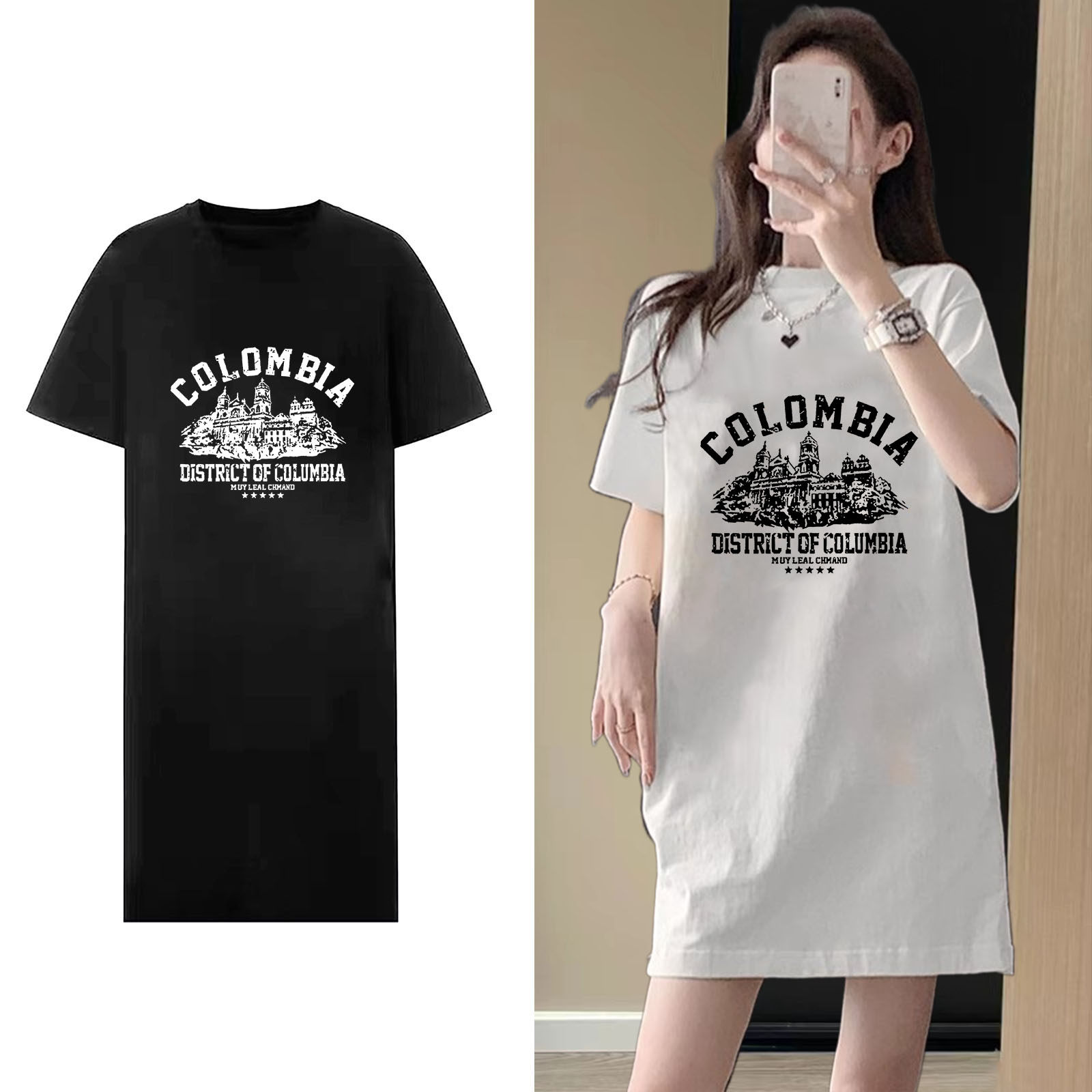 2026夏季新款宽松短袖T恤女连衣裙中长款长裙遮屁上衣纯棉体恤裙
