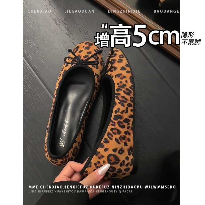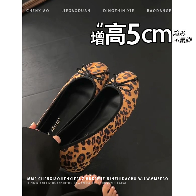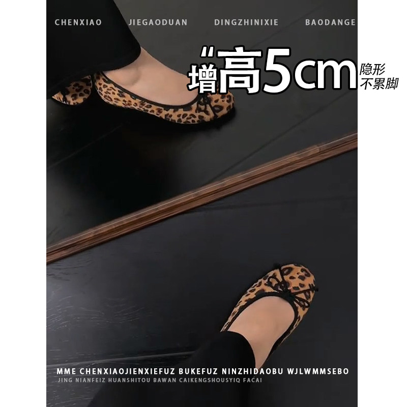 不累脚!隐形内增高小个子玛丽珍鞋2026秋冬新款豹纹浅口单鞋女