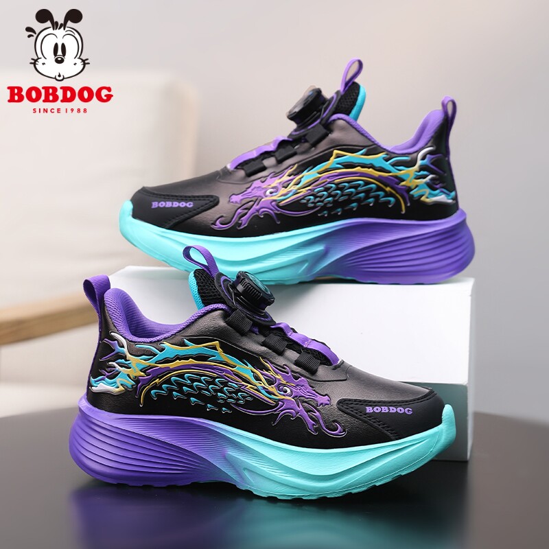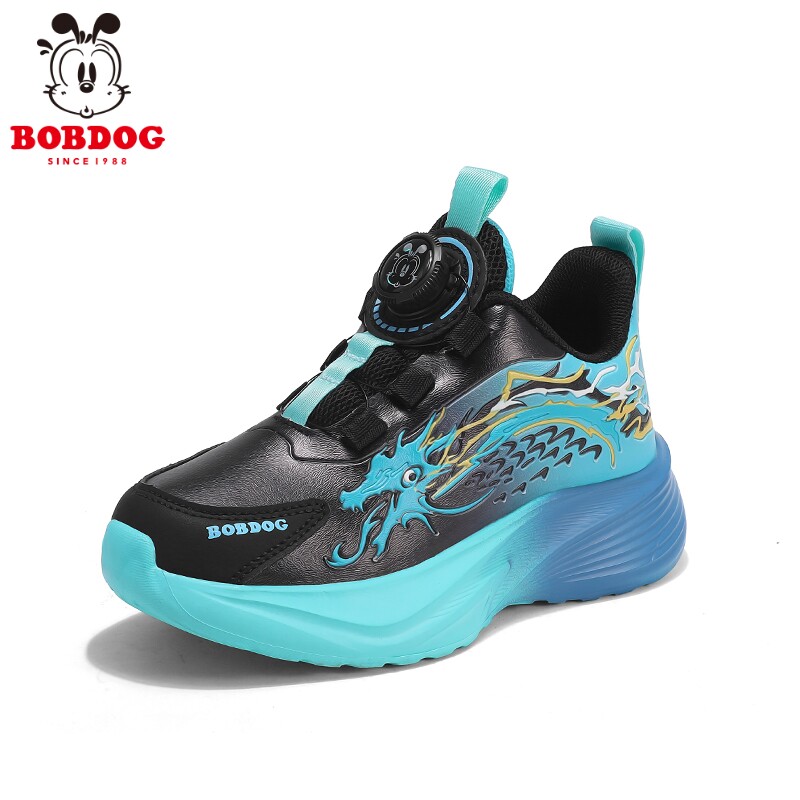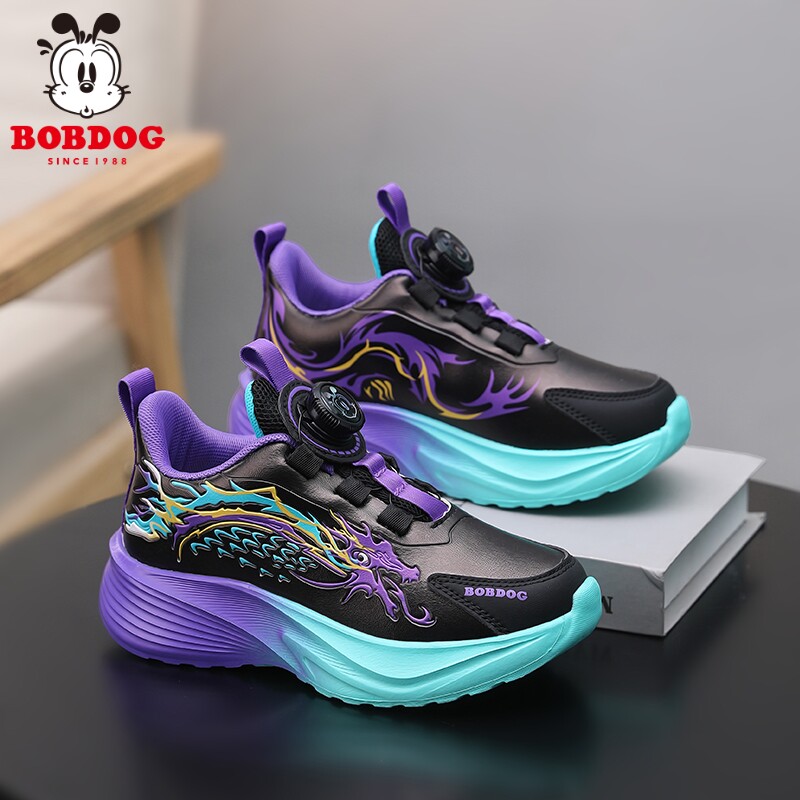 巴布豆童鞋男童鞋子春秋新款皮面防水儿童运动鞋中大童碳板跑步鞋
