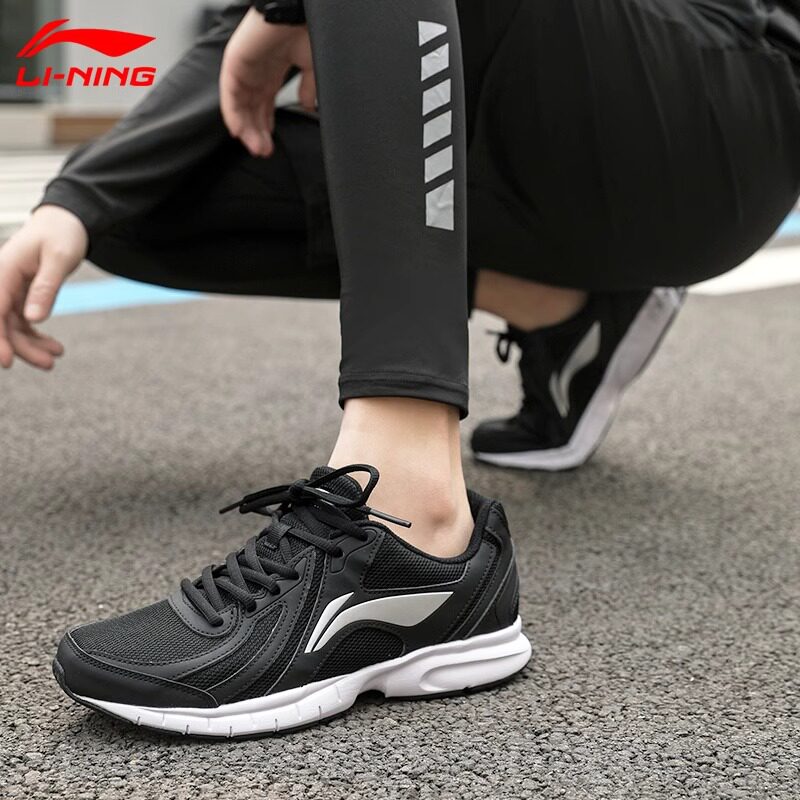 李宁跑步鞋男鞋春秋季轻便网面透气黑色休闲鞋软底减震防滑运动鞋