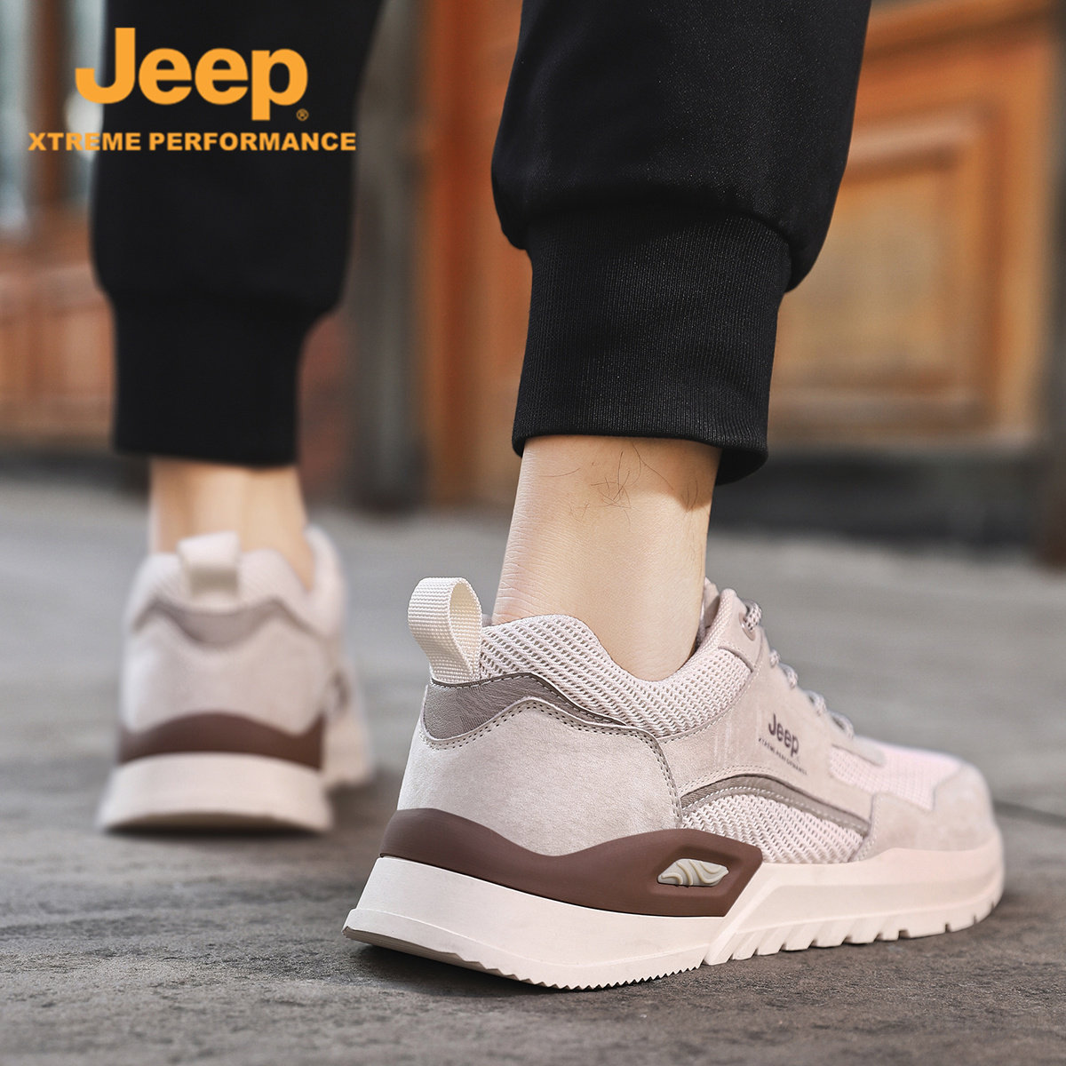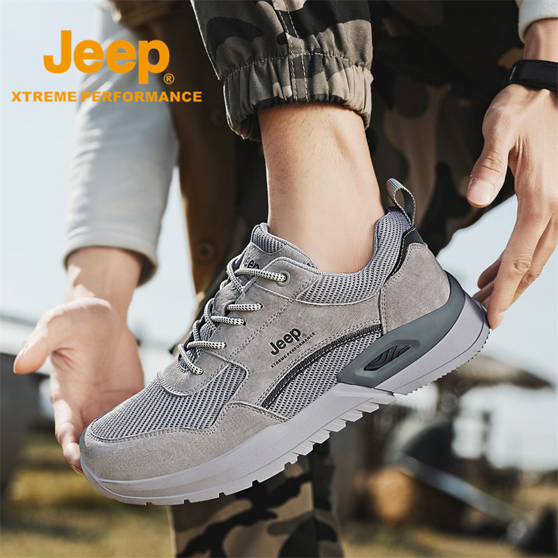 jeep吉普男鞋2026夏季新款软底网面运动鞋男真皮透气轻便休闲鞋子