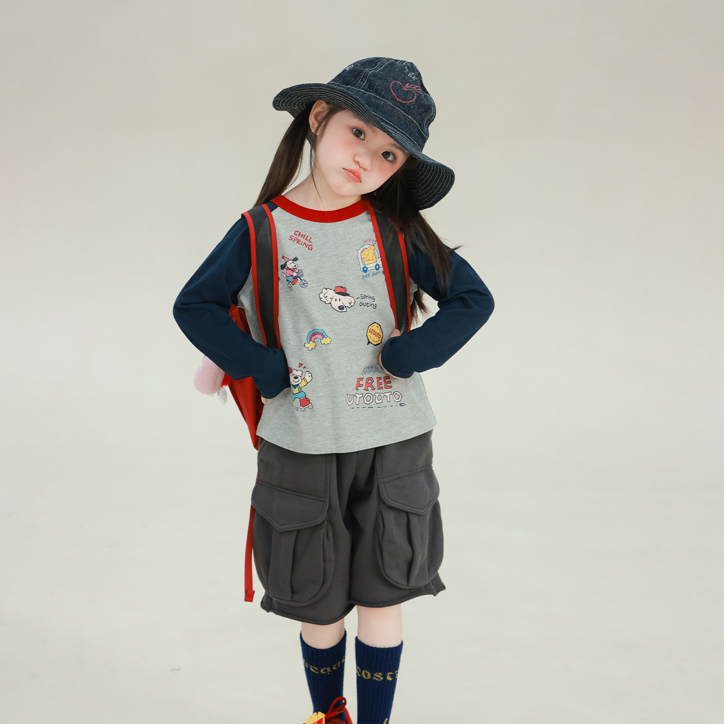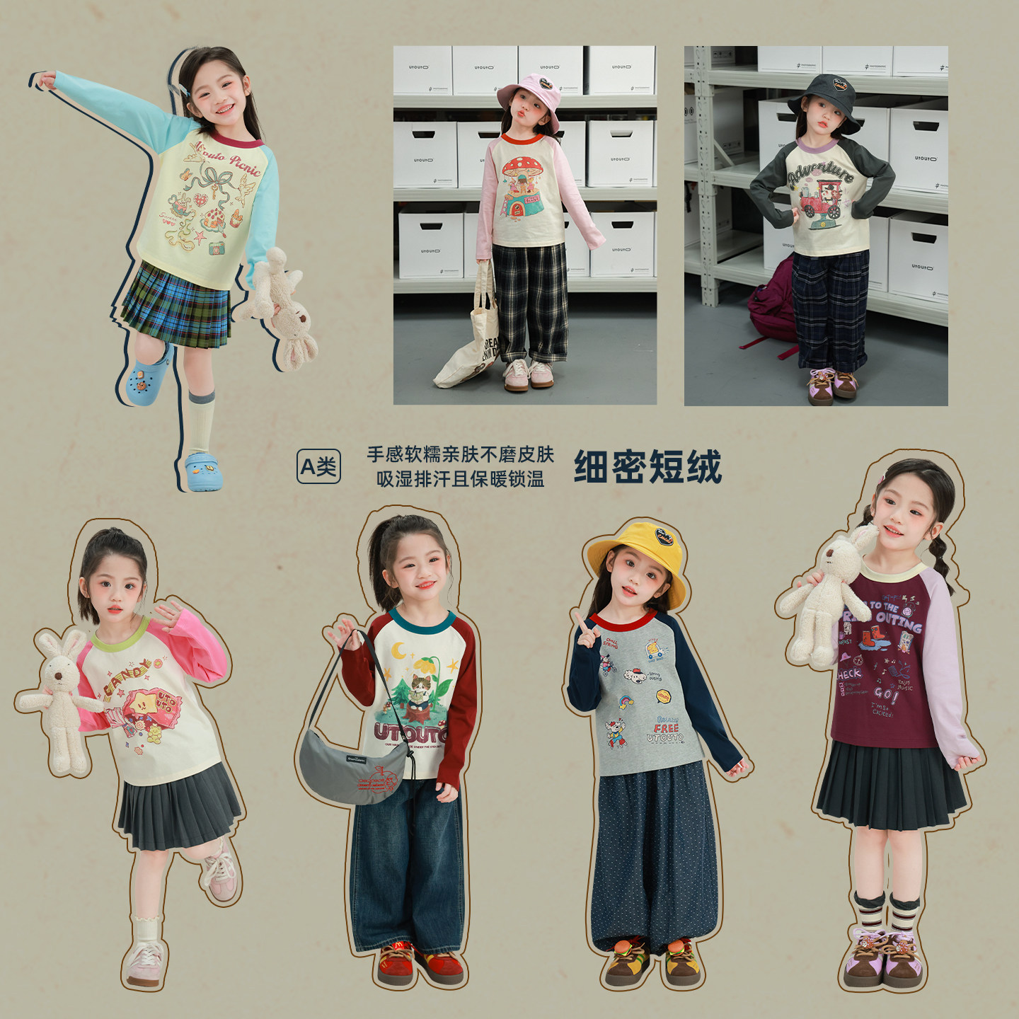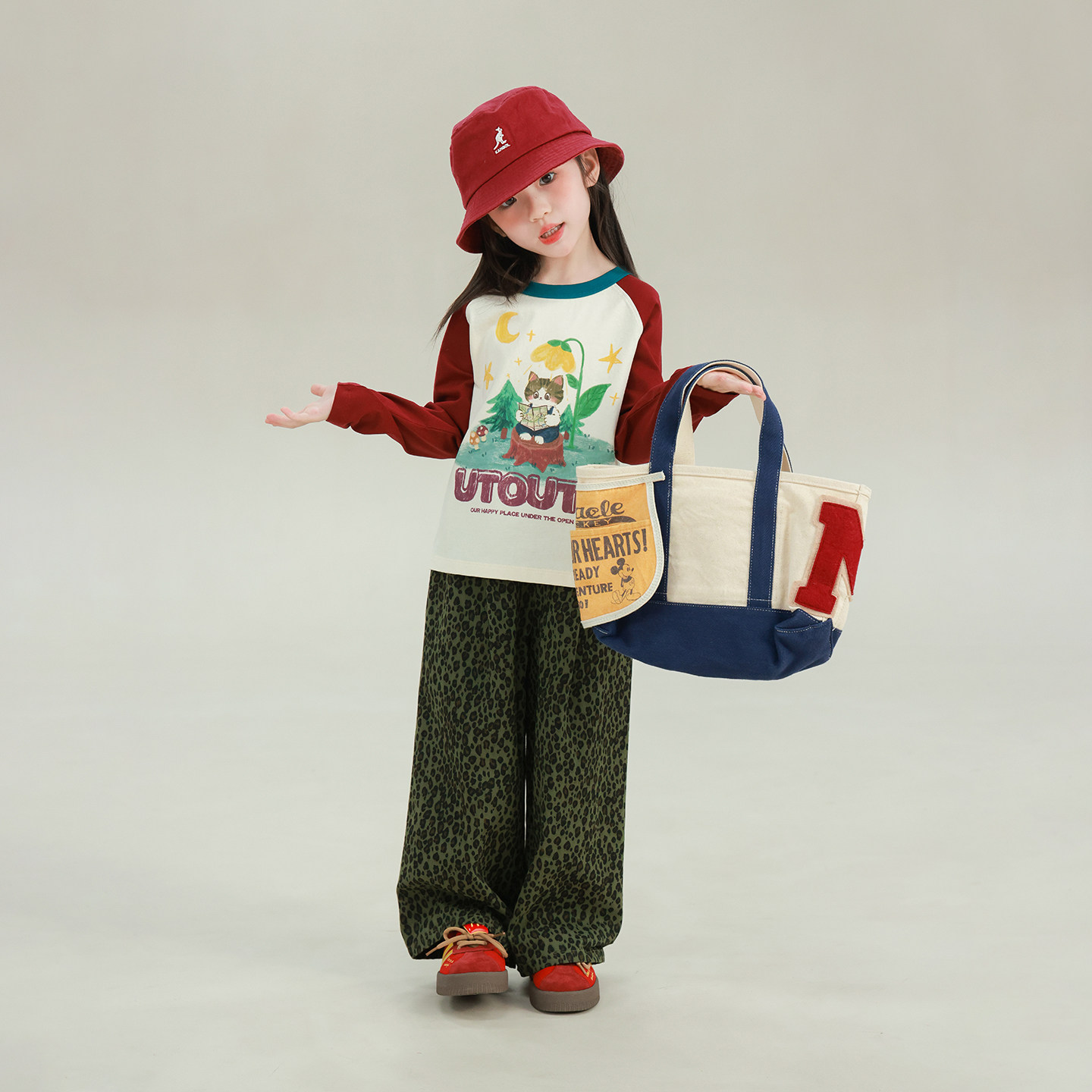 大耳象女童印花插肩长袖T恤2026春季新款宝儿套头圆领休闲上衣