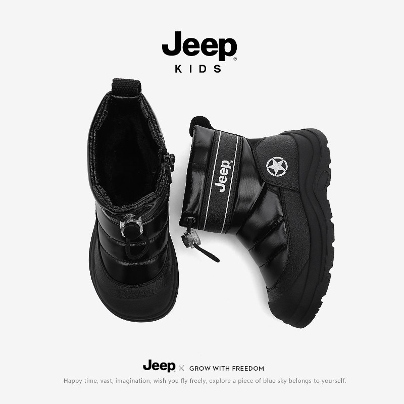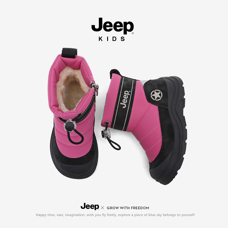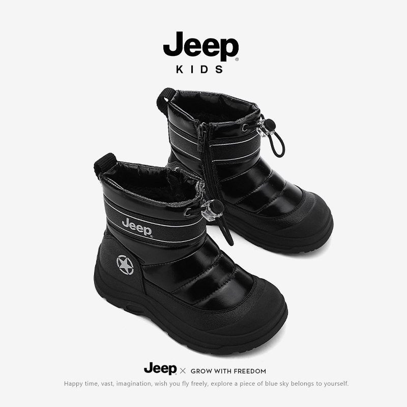 JEEP儿童雪地靴女童鞋子加绒宝宝棉鞋男童靴子大棉鞋2025冬季新款