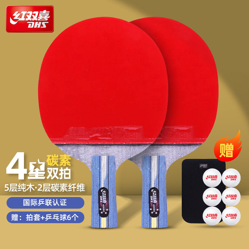 红双喜官方正品乒乓球拍四星级狂飚4星专业级碳素横直拍单拍双拍