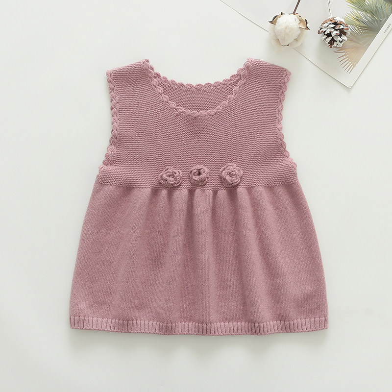 洪叶云台女童羊绒衫背心宝宝半身裙毛衣儿童马甲羊毛衫烟粉色贴花