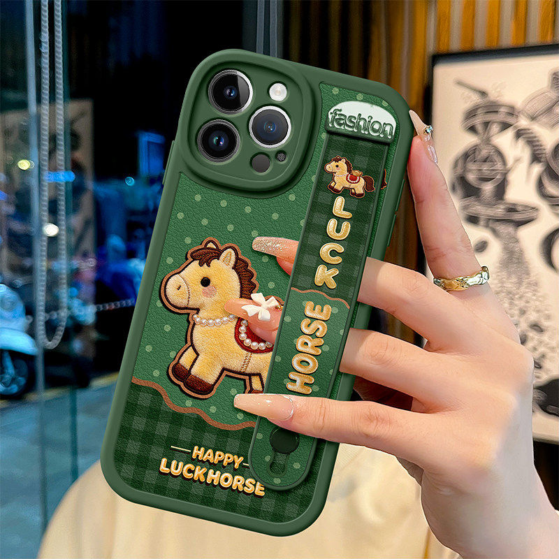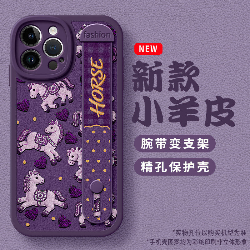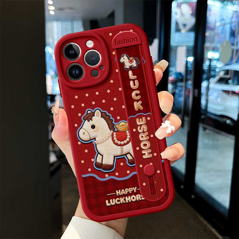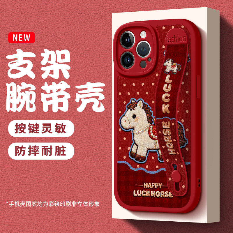 红爱心小马适用苹果17promax手机壳iPhoneAir新款16pro女款15plus高级感14硅胶全包防摔13腕带支架12小羊皮11