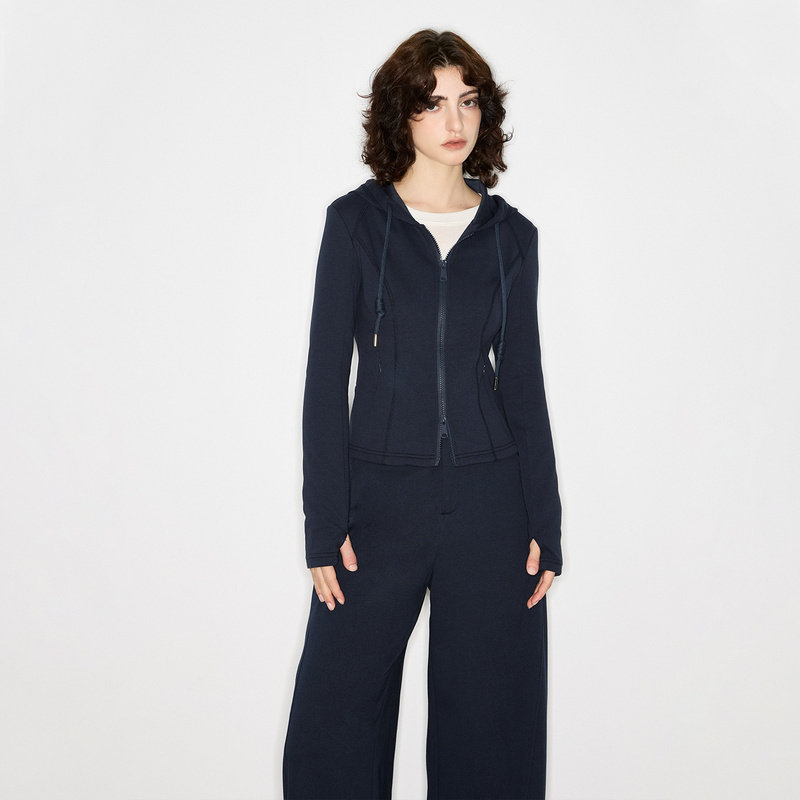 Jamor加墨简约高级收腰连帽卫衣直筒休闲裤子套装2026春新款