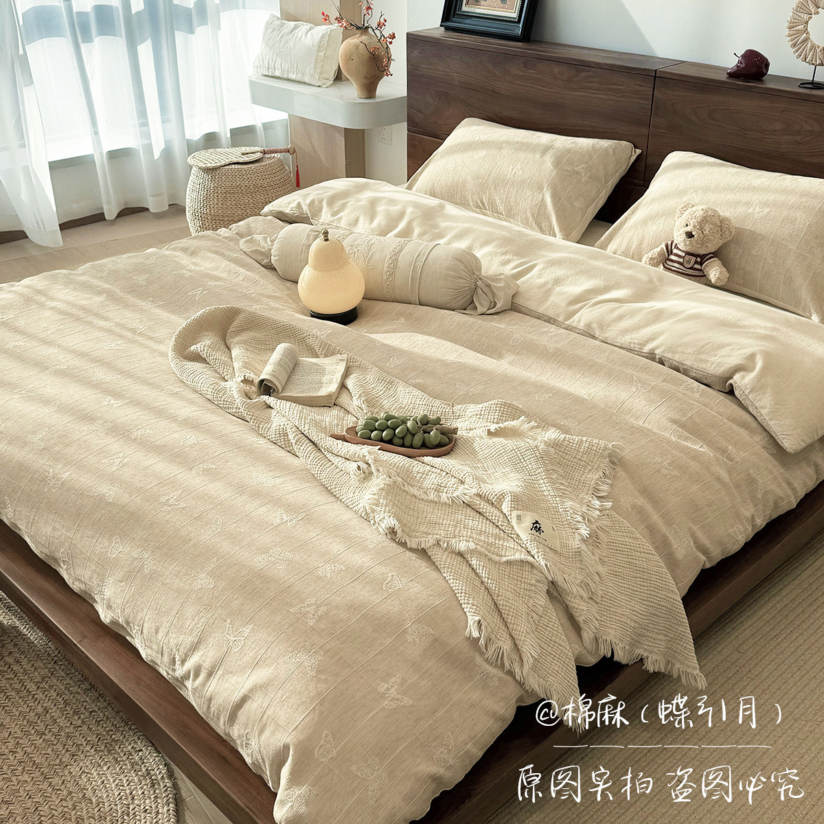 棉麻四件套轻奢高级感亚麻a类床单上用品夏季色织提花2026正流行