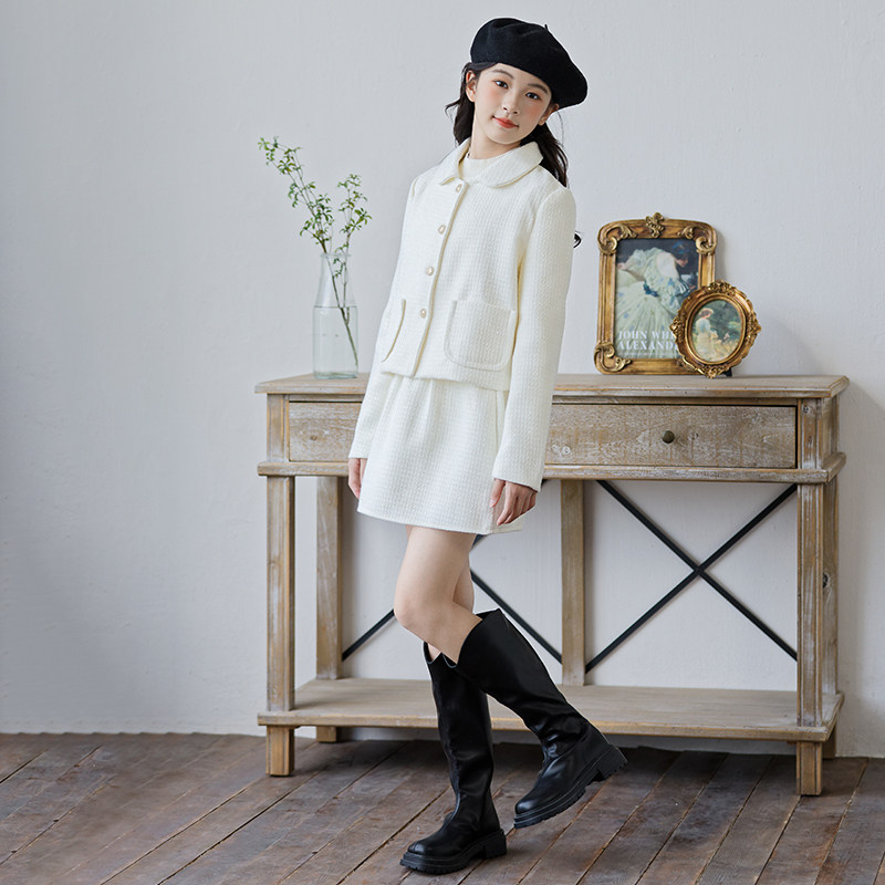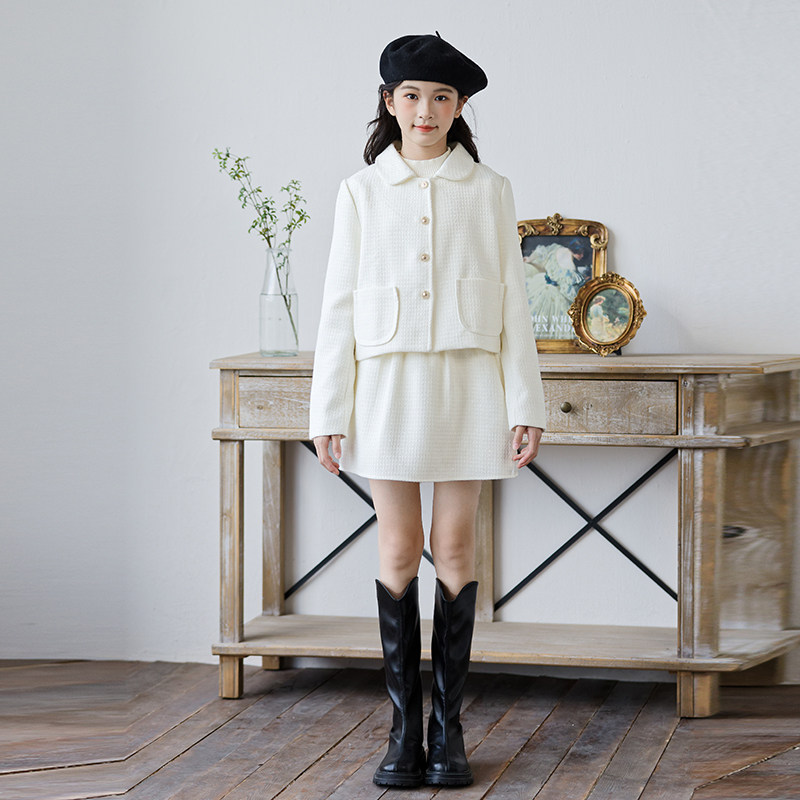 女童小香风套装2026新款秋冬装儿童洋气时髦外套半身裙两件套甜美