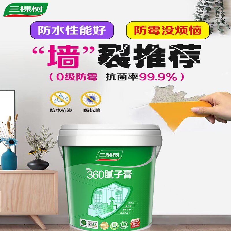 三棵树抗菌补墙膏家用防潮防霉墙面修补膏白色腻子粉内墙裂缝修复