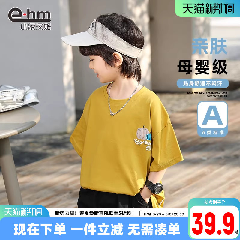 小象汉姆童装男童短袖T恤纯棉儿童夏天t恤衫2026夏新款中大童洋气