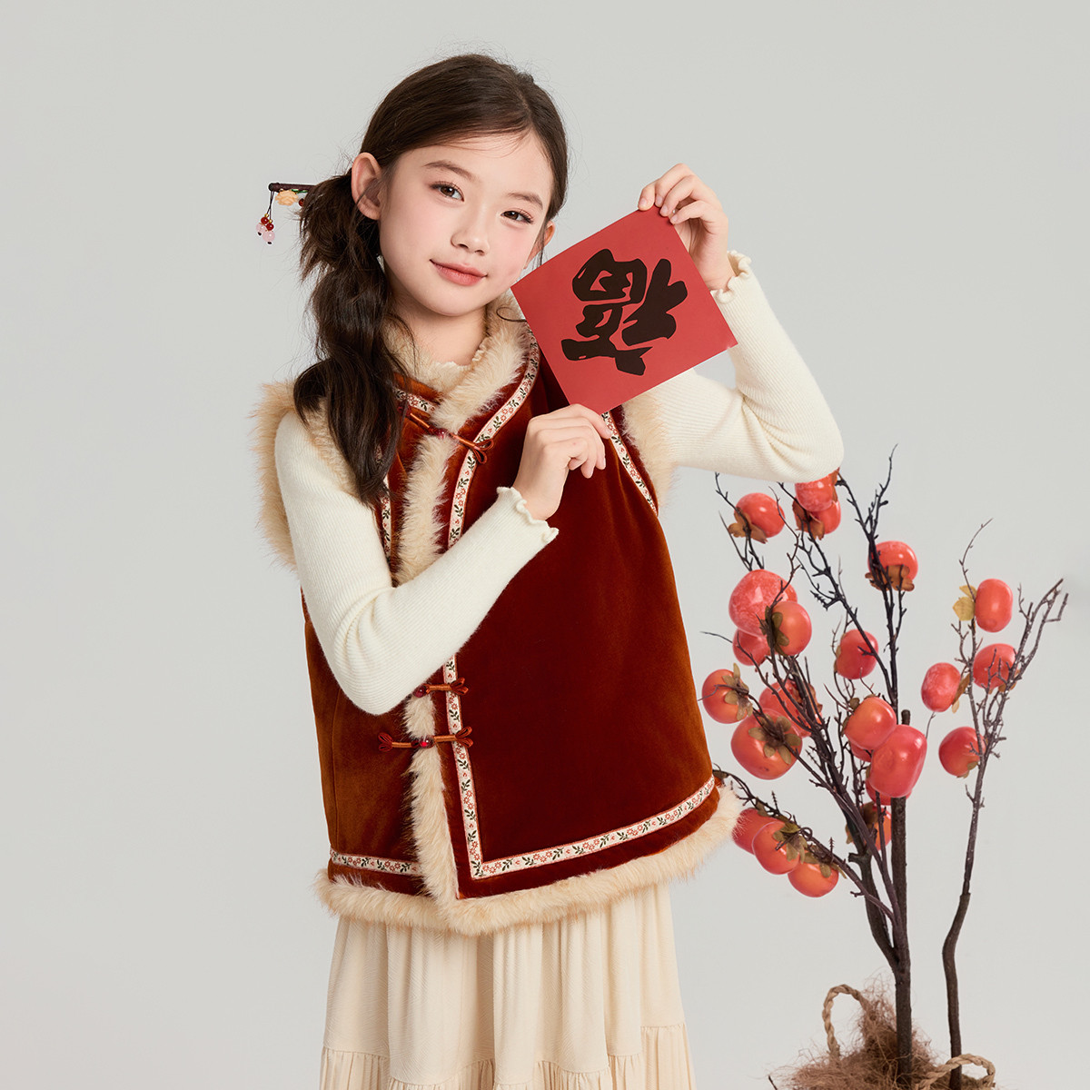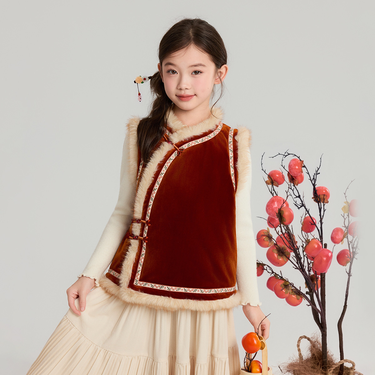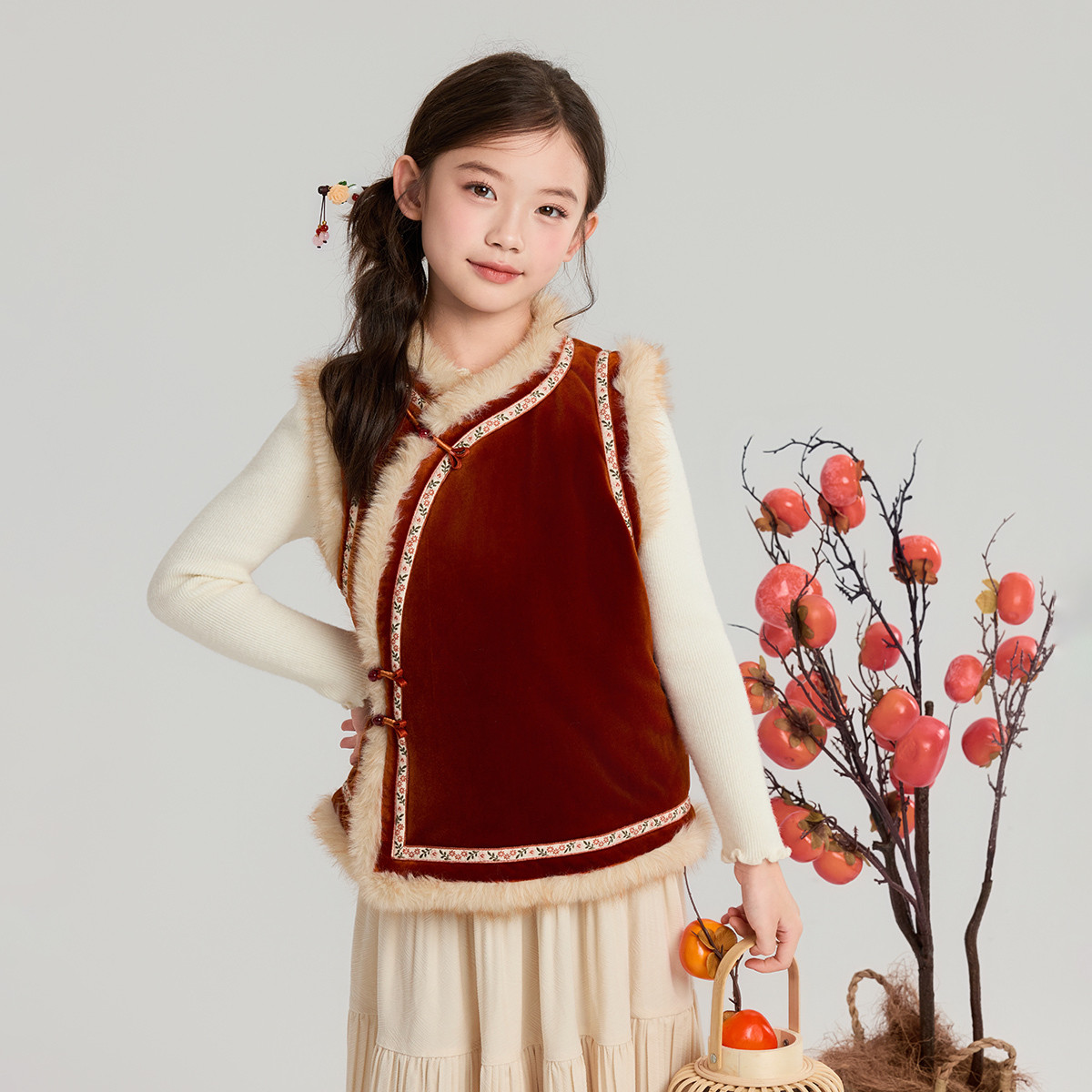 布丁哈鲁冬装女童童装上衣2026秋冬季新款儿童复古国风新年棉马甲